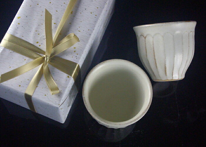 【最大30%offクーポンあり】益子焼 カップギフトセット【kinariしのぎ丸カップ2個/ラッピング付き】 カップ 湯のみ フリーカップ 夫婦 ペア食器 おそろい 結婚祝い プレゼント わかさま陶芸
