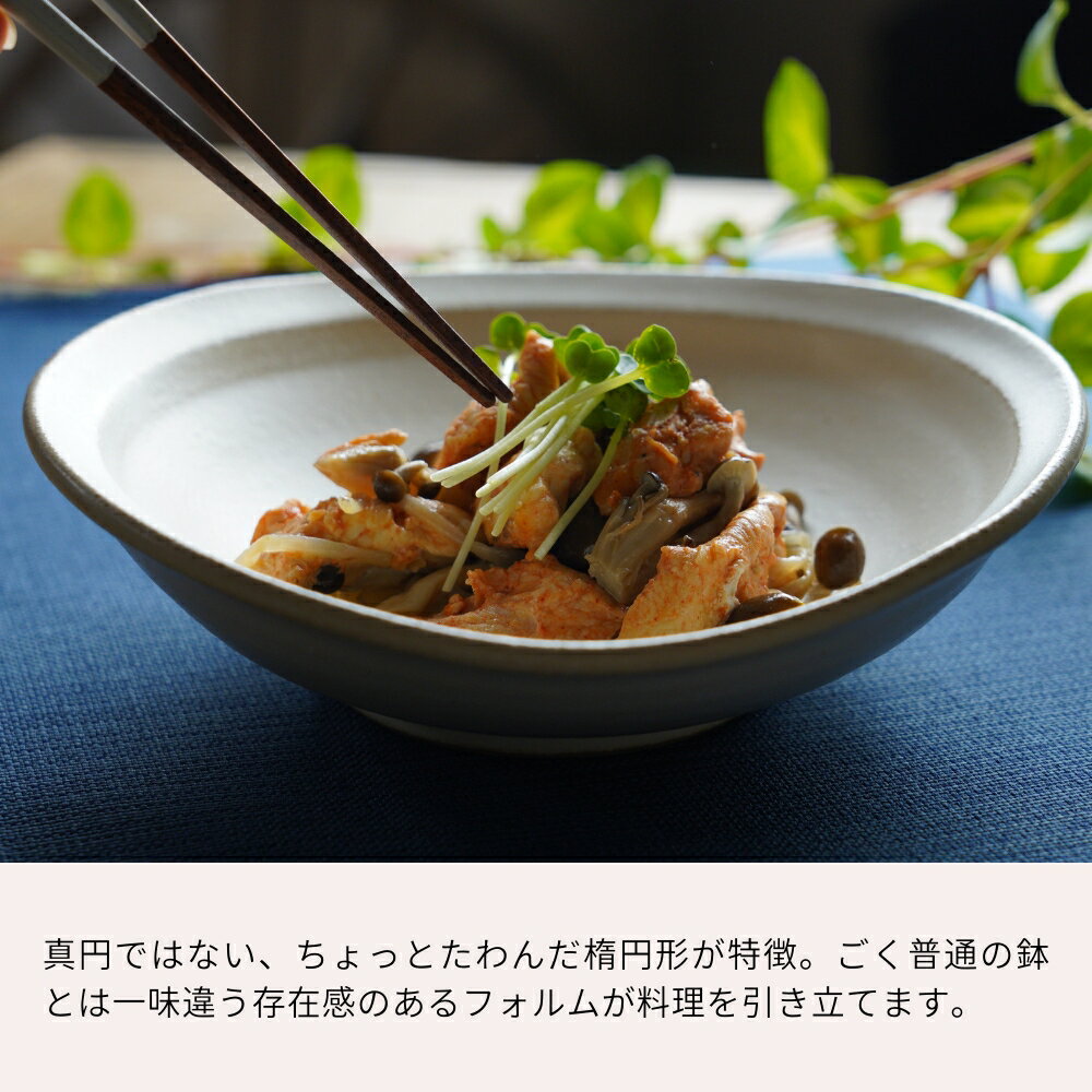 【max30%offクーポンあり】益子焼 たわみ鉢【大】kinari わかさま陶芸 浅鉢 中鉢 シンプル ナチュラル おしゃれ 職人の手作り アイボリー 煮物鉢 サラダボウル 和食器