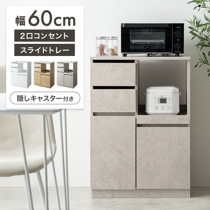 レンジ台 幅60cm キッチンカウンター 完成品 木製 ホワイト ナチュラル ダークブラウン 組立不要 ロータイプ ミニ キッチンボード スライドテーブル 家電収納 引出し 木製 カップボード
