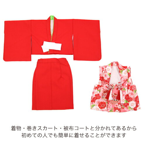 【レンタル予約状況】●*上記の日程の間は予約不可。 日程の記載がない場合は予約可能です。 ※こちらはレンタル商品です※ >>レンタル商品ご利用ガイドはこちら 一歳の女の子に 被布着物レンタルセット! せっかくのお祝いの日だから、いつもより 可愛くしてあげたいですね! 多くの家族の晴れの日を演出する 簡単二部式着物のセットで お届けします。 ひなまつり・初節句・お正月 ご兄弟の七五三やお祝い事など… 様々なシーンにお使いいただけますよ。 -セット内容- 着物・被布コート・巻きスカート 【素材】 (着物・被布コート・巻きスカート共に) 表地…ポリエステル100% 裏地…ポリエステル100% 【サイズ】 ●着物 身丈…約27.5cm 裄…約37.0cm 袖丈…約32.5cm ●被布コート 身丈…約36.5cm ●巻きスカート 身丈…約36.0cm ※生地の染めに画像の様な斑点がある場合がございますが、 生産過程上のものであり不良ではございません。 ※二部式なので上下でサイズ調節が可能です。 上記のサイズは目安としてご参考ください。 ※商品の柄の配置は写真とまったく同じではございません。 ※レンタル商品のため、お客様が 身上げ・肩上げなど衣服を加工することは できませんのでご了承くださいませ。※キャンセルについてご注文日・ご使用日によりキャンセル料がかかる場合がございます。弊社よりキャンセル料金をご連絡させて頂きました日より1週間以内のお振込みをお願いしております。※こちらは1歳用被布着物セット レンタル商品です※ レンタル予約状況を確認いたしまして、 レンタル可・不可のご連絡をさせていただきます。 1歳女児用 簡単着付けの二部式着物!初節句・ひなまつり・お食い初めなど…和なでしこが大切な記念日を最高の思い出にするお手伝いをさせて頂きます。 赤色の無地がすっきりと可愛い着物。 独特の光沢を放つ生地が豪華でめでたい印象です。 ピンクの被布には桜と鞠が可愛く華やか。 晴れやかなお祝いの一日にぴったりなデザインですよ。 →他の1歳用着物レンタルはこちら できるだけ実物に近いように撮影・画像処理をさせていただいておりますが、お客様のモニター環境などにより実際の商品とカラーが 若干異なって見える場合がございます。カラーやサイズなどのご心配がございましたら遠慮なくお問い合わせください。 七五三着物セット 身丈 袖丈 裄丈 着物 27.5cm 32.5cm 37.0cm 被布コート 36.5cm - - 巻きスカート 36.0cm - - 素材 表地・裏地 ポリエステル100% ・ セット内容 ・ 着物・被布コート・巻きスカート ・ 備考 ・ ※二部式なので上下でサイズ調節が可能です。上記のサイズは目安としてご参考ください。※商品の柄の配置は写真とまったく同じではございません。予めご了承下さいませ。
