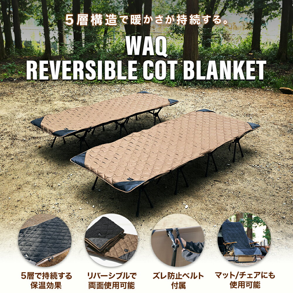 WAQ Reversible Cot Blanket リバーシブルコットブランケット (ワイド/レギュラー) WAQ-RCB1 コット用ブランケット コットカバー ブランケット 丸洗い可 冬キャンプ アウトドア 撥水【1年保証】