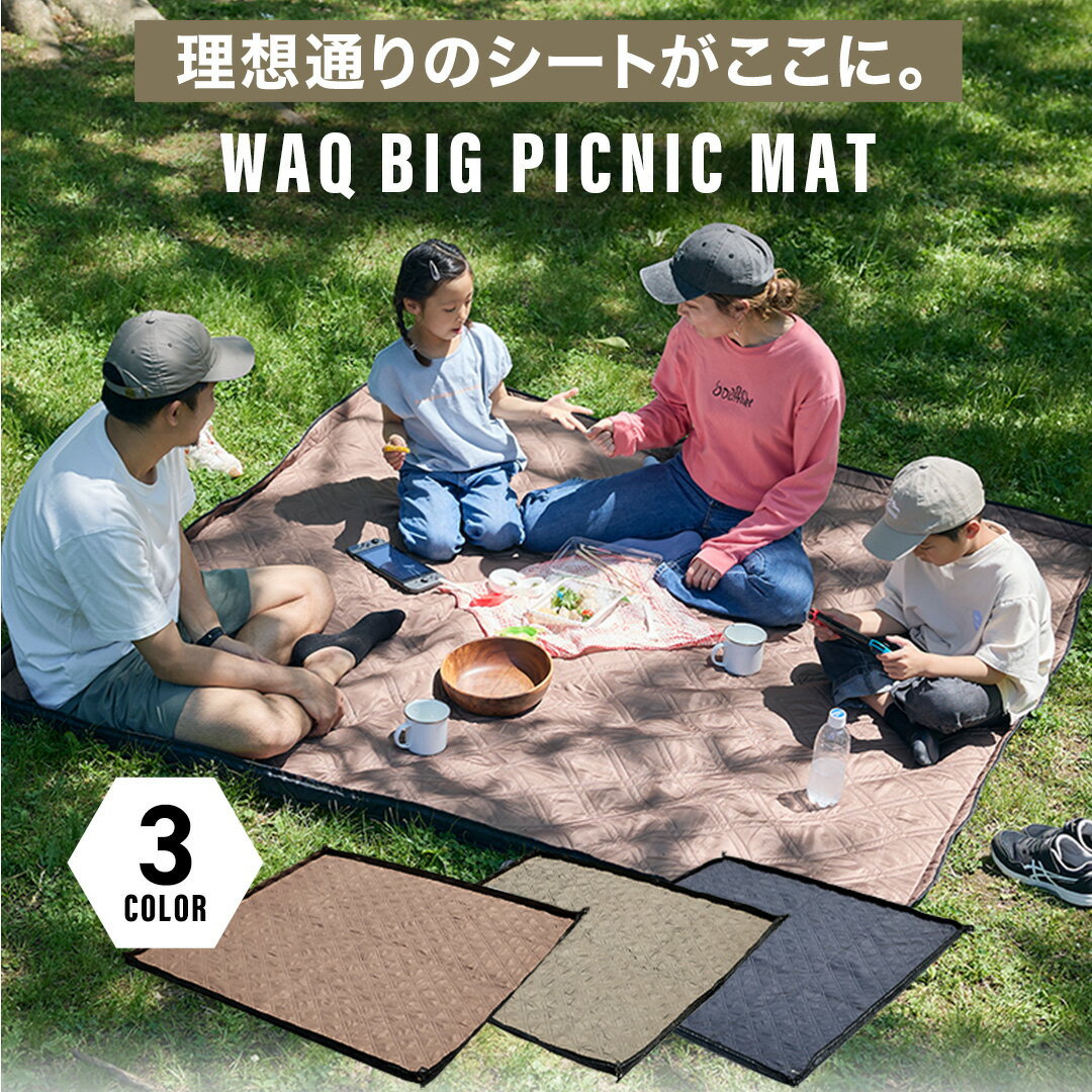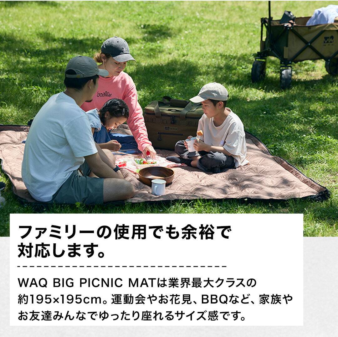 WAQ BIG PICNIC MAT ビッグサイズ レジャーシート 厚手 大判 195×195 遠足 子供 おしゃれ キャンプ クッション ペグ 大きい ピクニックシート 撥水 レジャー シート 家族 ペグ穴付き キルティング ピクニックマット