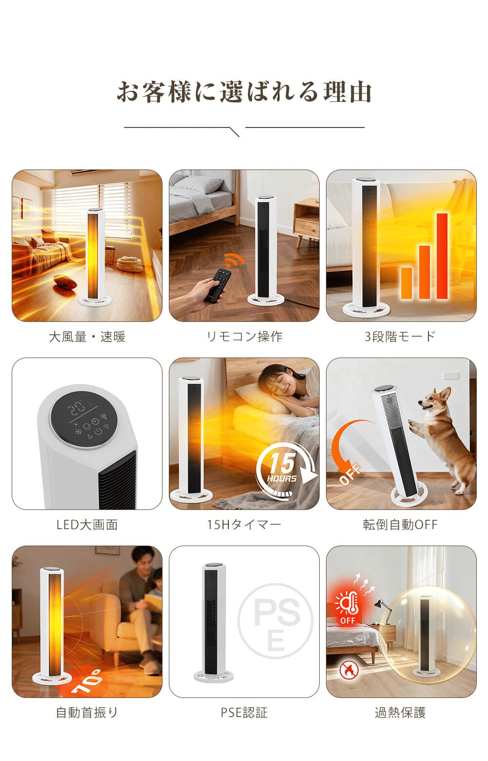 【2日限定3000円OFFクーポン】セラミックヒーター 2秒速暖 電気ヒーター ファンヒーター 扇風機 首振り70度 リモコン付き 大風量 タイマー 温度調節 過熱保護 転倒自動OFF タワー型 電気ストーブ セラミックファンヒーター ヒーター 電気ファンヒーター 暖房器具 脱衣所 PSE
