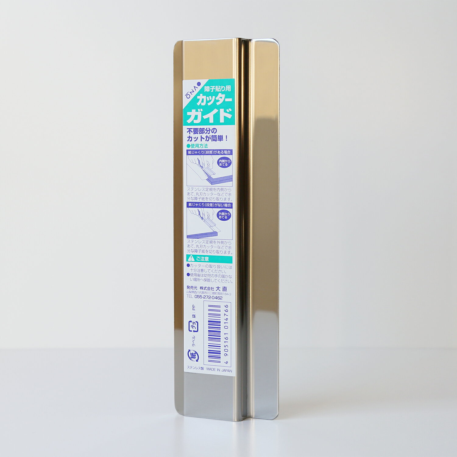 商品詳細・特徴 障子貼りの余分な紙落とし専用カッターガイドです。 お1人での作業でも、ずれることなく安全に行えます。 コンパクト設計、丈夫なステンレス使用。 商品仕様 サイズ(ガイド本体):約 幅6cm × 長さ20cm× 厚さ1cm ご注意 ※ 本品は障子張り専用ガイドです。障子張り以外には使用しないでください。 ※ カッターの取り扱いには十分注意してください。 ※ 使用後は、ガイドについた汚れを拭き取り、幼児の手の届かないところに保管してください。