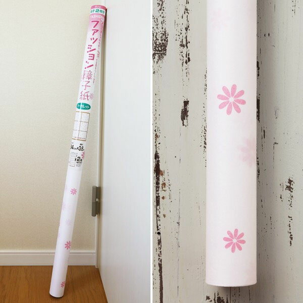 \在庫限り/障子紙おしゃれ かわいい 洋風 モダン 和紙【ファッション障子紙 マーガレット ピンク】幅94cm×長さ3.6m 障子2枚分 簡単 張替え 張り替え かわいい マーガレット 花柄 昭和レトロ 和風 日本製 シンプル ワンポイント 模様替え おすすめ 大直