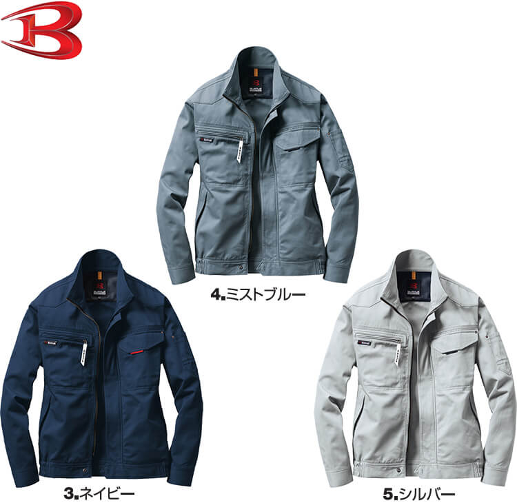 ※沖縄・離島・一部地域への配送は、9,800円(税込)以上で送料無料となります。機能説明 程よくゆとりをもたせたシルエットとソリッドなデザインが魅力の綿100%企業ユニフォームの代表格 ★吸汗性と風合いの良さが特徴の日本製綿100%ツイルクロス素材を使用 ★製品シリコン洗いをかけることで柔らかくしなやかな着用感と優れた防縮性を兼備 スペック メーカー バートル(BURTLE) 品番/シリーズ 1311/1311シリーズ シーズン 秋冬物 ※このシリーズの春夏用商品はコチラ 商品名 ブルゾン 素材 ツイルクロス、製品洗い、シリコンソフト加工 混率 綿100% カラー 3.ネイビー 4.ミストブルー 5.シルバー サイズ S-5L ※4L以降は割り高になります。 >> S-3Lは コチラ >> 4Lは コチラ >> 5Lは コチラ 加工 ※ご要望の加工は下のバナーをクリックしてお求めくださいませ。 サイズ、色等についてのご注意 製品加工の為に、仕上がりのサイズや色等に多少のバラつきがございます。 予めご了承下さいませ。 ※同じメーカー商品の色名・色番が同じでも、別シリーズの場合、色合いが異なりますので、ご注意くださいませ。 上下で色をそろえる場合、同じシリーズの商品をお買い求め下さいませ。 尚、綿製品の場合は同じシリーズでも若干バラツキがございます事、予めご了承くださいませ。 コーディネート商品(※下記画像をクリックすると各商品にジャンプします) 1311 ブルゾン 1315 長袖シャツ 1312 ツータックカーゴパンツ 1313 ツータックパンツ 1311 ブルゾン &1312 ワンタックカーゴパンツ 1311 ブルゾン &1313 ワンタックパンツ 1315 長袖シャツ &1312 ワンタックカーゴパンツ 1315 長袖シャツ &1313 ワンタックパンツ