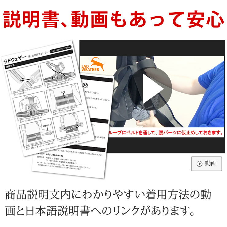 メーカー希望小売価格はメーカーサイトに基づいて掲載しています※概要はキャンペーンページをご確認ください。LAD WEATHER ラドウェザー 姿勢矯正の最終兵器。背中と腰をWサポート!9個の滑車で超強力!姿勢矯正サポーター ladsupport014着用方法の動画はコチラから視聴できます。アウトドアブランドのラドウェザー から、背中、腰用サポーターが登場。背中と腰の一体型なので、上半身全体をしっかりサポート。着用することで正しい姿勢に補正しながら、腰も支えるので腰の負担を軽減できます。腰部分には9個の滑車がついており、滑車の力で腰をしっかり締め上げて固定できます。軽い力で引っ張るだけでもしっかり締まるので、一般的な腰サポーターのように力いっぱい締めながら装着する必要はありません。女性でも楽々装着することができます。着用中は、肩甲骨を引き寄せて腰を立てて、正しい姿勢に補正します。猫背、反り腰、巻き肩などの姿勢の悩みに威力を発揮します。姿勢がよくなる事で見た目のスタイルアップはもちろん、慢性的な首や肩、腰の悩みへの効果も期待できます。背中のパーツを取り外しで、腰ベルトとしても使用できます。1つで2通りの使い方が出来るので、コスパも抜群です。腰の部分は通気性抜群のメッシュ素材で、熱や湿気がこもりにくく長時間の使用も快適です。長時間座りっぱなしのデスクワークやロングドライブ、重い物を持ったり腰に負荷がかかりやすい仕事や家事育児、日常生活から運動時まで、あらゆる時でもしっかり支えてサポートします。■説明書、動画もあって安心商品説明文内にわかりやすい着用方法の動画と日本語説明書へのリンクがあります。■腰や姿勢の悩みに着用することで、正しい姿勢に補正できます。腰をしっかり支えて、腰の負担も軽減します。■軽い力で腰をしっかり固定滑車のはたらきで、軽い力で引っ張るだけでもギューッとしっかり締まります。■背中と腰をダブルでサポート背中と腰の一体型なので、上半身全体をしっかりサポートします。■猫背や反り腰、巻き肩対策に肩甲骨をと引き寄せながら腰を支えるので、着用中は自然に姿勢が良くなります。■美姿勢でスッキリ!姿勢を正すことで、見た目の変化はもちろん肩や首、腰への負担を軽減できます。■通気性抜群で蒸れないベルト部分は空気の通るメッシュ素材。長時間の着用でも、蒸れや熱を逃がして快適。■腰だけでも使える2way背中部分を外して、腰だけでも使用可能。体の状態に合わせて2通りの使い方ができます。■デスクワークやテレワークに座りっぱなしの時の姿勢サポートに。服の下に着用しても目立ちません。■重い荷物を持つときに重い荷物を持ったり子供を抱っこするときの、腰の負担を軽減します。■姿勢が気になる方に姿勢が気になったり、慢性的に方や腰に違和感がある方に。■長時間のドライブに長時間同じ姿勢でいるドライブや飛行機、新幹線での移動時に負担を軽減します。■日常生活や家事、育児に荷物を持ったり中腰になったり、腰を酷使することの多い家事をサポートします。カラーブラックサイズウエストまわりサイズを計測して、下記と照らし合わせて下さい。※ 男女共通です。※ 服の上に着用する場合は、服の上からサイズを測ってください。対応ウエストサイズSサイズ 67〜73cmMサイズ 74〜83cmLサイズ 84〜96cm素材本体:ネオプレーン、スパンデックスプレート:プラスチックセット内容本体(背中パーツと腰パーツに分離可能) × 1日本語説明書 × 1 ※コチラからダウンロードできます。備考※開封後すぐは匂いが気になる場合があります。風通しの良い場所にしばらく置いてください。※掲載画像と実商品のカラーは、モニターの状態等によって若干異なることがございます。※付属品は仕様変更等により、若干異なることがございます。