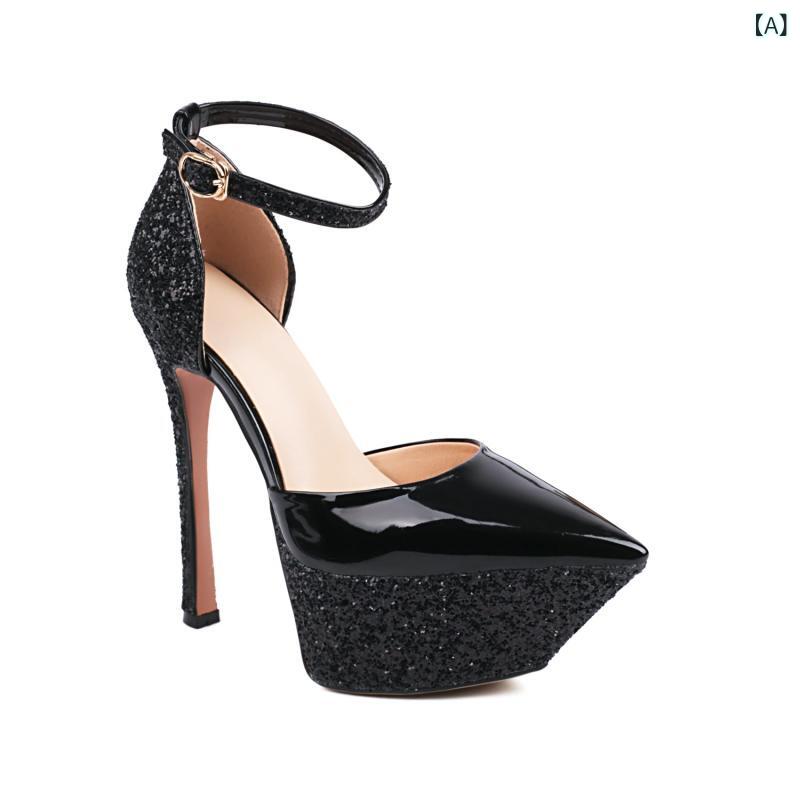 サンダル レディース 女性用 エナメル レザー ポインテッドトゥ カットアウト アンクルストラップ 厚底 ストーム ピンヒール 超高ヒール 大きいサイズ 結婚式 パーティー 欧米風 上品 春夏 ブラック ホワイト