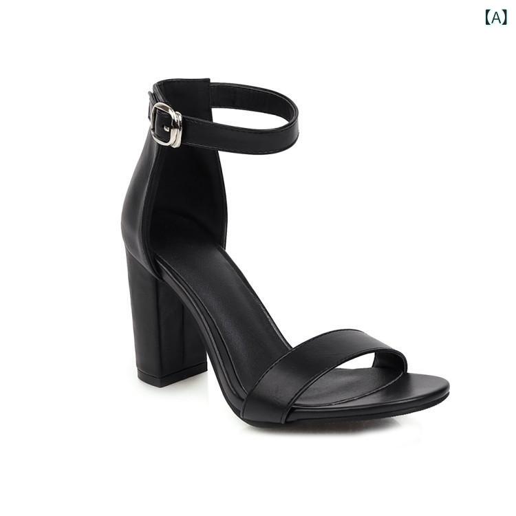 サンダル レディース 女性用 大きいサイズ Lサイズ 夏 シンプル 無地 オープントゥ 一字ストラップ 太ヒール チャンキーヒール ハイヒール フェイクレザー 合成皮革 ブラック ブラウン 黒 茶 普段使い カジュアル オフィス 通勤
