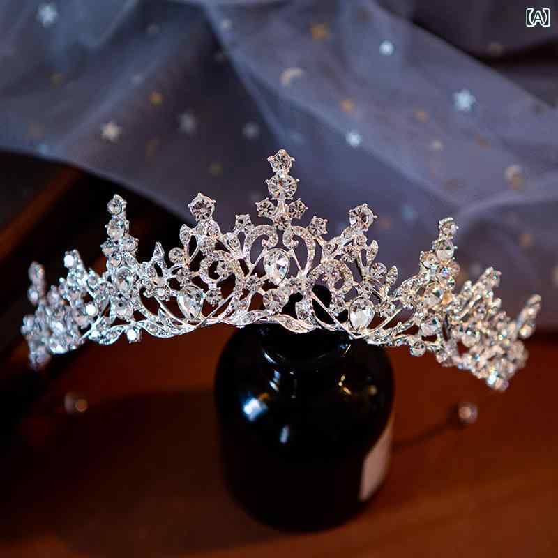 ヘアアクセサリー レディース 大ぶり ラインストーン ティアラ クラウン 豪華 輝き ブライダル ウェディング 結婚式 披露宴 花嫁 韓国風 プリンセス かわいい 上品 エレガント 合金製 電気メッキ加工