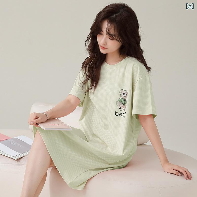 ルームワンピース レディース 女性用 春夏 コットン 綿 半袖 5分袖 薄手 軽量 かわいい キュート キャラクター アニメ パジャマ 寝巻き 部屋着 大きいサイズ ビッグサイズ ゆったり リラックス 丸首 クルーネック ミディ丈 外出着 ワンマイルウェ