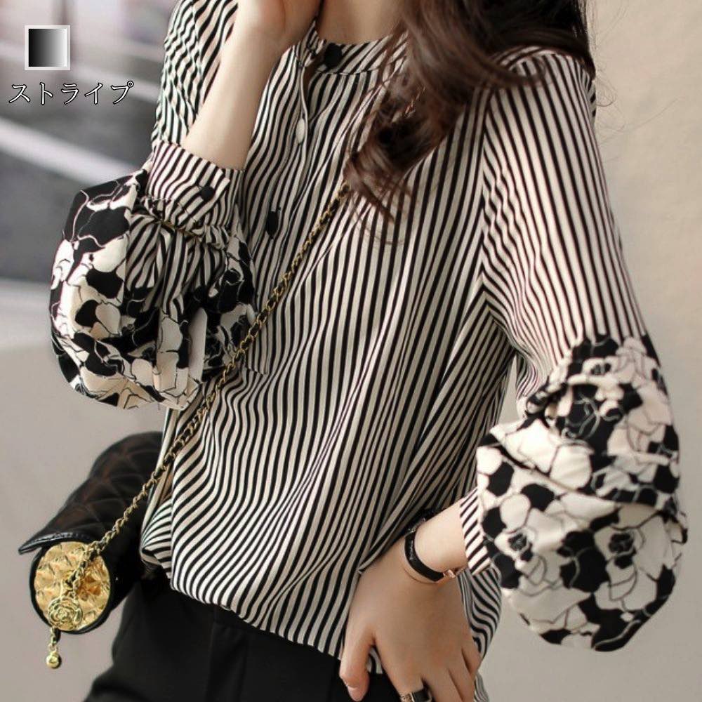 ブラウス レディース ストライプMIXブラウス 厚手 ワンピース フォーマル 秋 冬 スーツ シフォン ボウタイ 白 オフィス カットソー カジュアル レース きれいめ 黒 春 ブランド シャツ 高品質 おしゃれ フリル 長袖 Tシャツ ノーアイロン 50代 人気 事務服