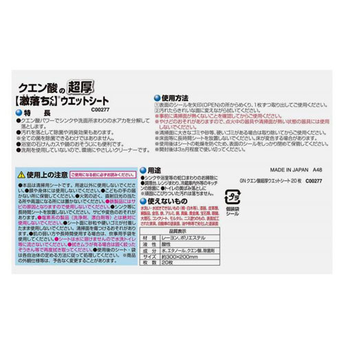 激落ちくん クエン酸超厚ウエットシート 20枚入