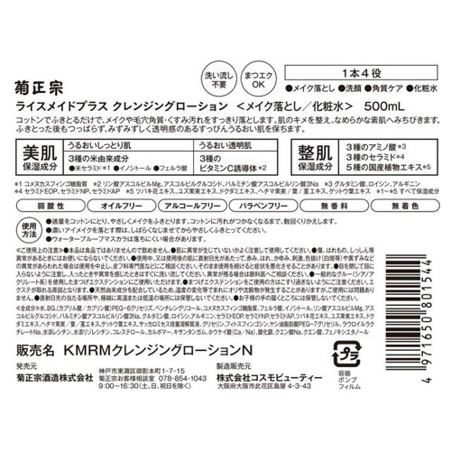 菊正宗酒造 RiceMade+ クレンジングローション 500ml