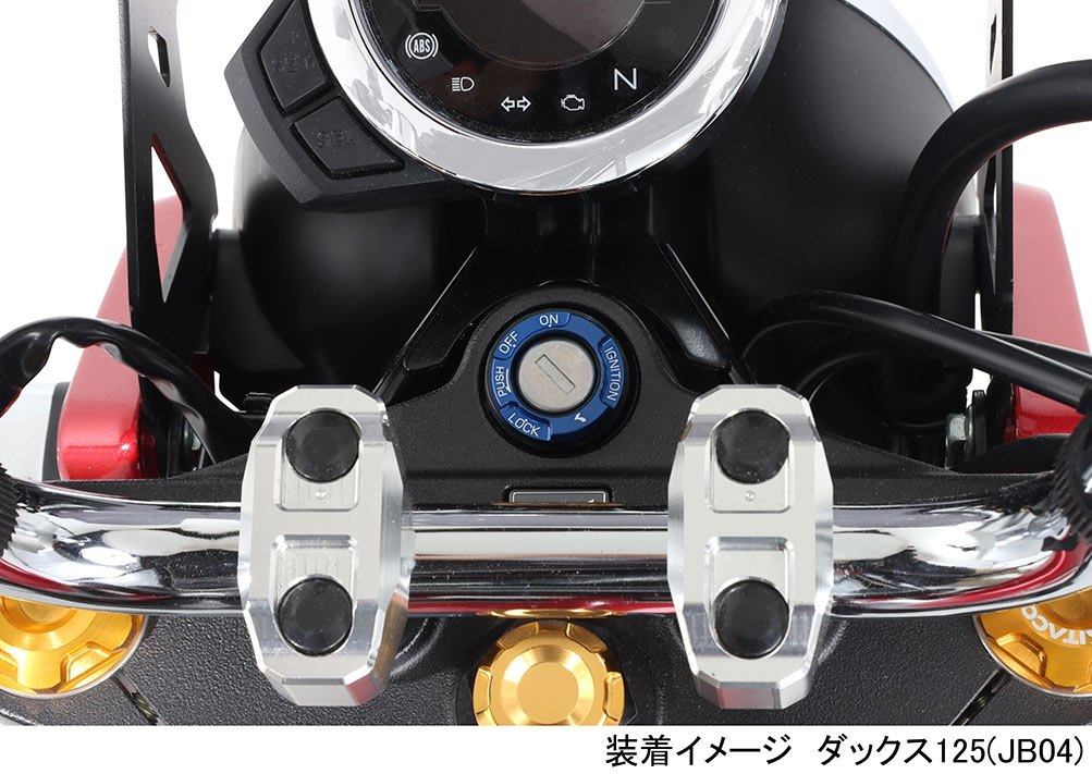 ■注意■この商品は下記となります。必ずご確認ください。カラー:ブルー■他の商品はこちらですカラー:レッドはこちらカラー:ゴールドはこちら※リンク先に商品がない場合、すでに完売している商品となります。予めご了承ください。■商品概要【素材】・アルミ削り出し製・アルマイト仕上げ【サイズ】・Φ28×Φ18.5×3mm【取付方法】・両面テープ貼付け【付属品】・両面テープ■詳細説明■アルミリングでメインキーボックスをドレスアップ・メインキーボックスに貼り付けるアルミ削り出しのドレスアップアイテムです。ブルー、レッド、ゴールドアルマイトの3色をラインアップ。■ノーマルキーボックスの表示に合わせて貼るだけ。ON・OFF・PUSH・LOCK・ロゴ・IGNITIONはレーザーマーカーで印字。■注意点※年式、形式、車種によっては、サイズやキーの形状が異なり、装着できない場合があります。装着する車輌のサイズをご確認の上ご購入ください。※グロム(FNo.JC61-1300001-、FNo.JC75-1000001-)リトラクタブルキー使用時不可。※メーカー都合により商品の仕様変更がある場合がございます。ご了承ください。■適合車種汎用 汎用スーパーカブ50 スーパーカブ50  備考: AA09全車種クロスカブ50 クロスカブ50  備考: AA06全車種クロスカブ110 クロスカブ110  備考: JA45全車種/JA60全車種スーパーカブ110 スーパーカブ110  備考: JA44全車種/JA59全車種ダックス125 ダックス125  備考: JB04全車種/JB06全車種グロム グロム  備考: FNO,JC61-1000001-1299999/JC92全車種