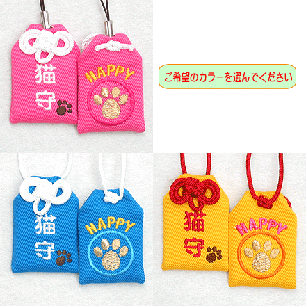 ギフト対応のアイコンについて サイズ 【プチ守】 縦4.3cm 横3cm ひも15cm 生地素材 黄色・水色・ピンク(綿ツイル) 表面 『猫守』 ※お名前はお入れできません お名前入れの商品はこちらになります ・プチサイズお名前入れ ・通常サイズお名前いれ+猫種シルエット 裏面 HAPPY 肉球刺繍 ※猫種シルエット刺繍はお入れできません 猫種シルエットの商品はこちらになります ・プチサイズ猫種シルエット ・通常サイズお名前いれ+猫種シルエット ひもオプション (+100円) ・首かけ用長ひも(45cm) ・携帯用ストラップ ご注意 こちらの商品はお名前、猫種シルエットはお入れできません。 1大切な家族の一員。 健康と幸せを祈るお守り袋。 楽しい時も、うれしい時も、 悲しい時も、つらい時も いつもあなたを想っていられるように そして、私もあなたから元気をもらえるように みつばの “ペット守” は誕生しました。 カラフルで元気なデザインから シンプルで持ちやすい色味まで 選べるデザインを豊富にラインナップ。 お手頃価格の身近に持ちやすい 既製品のペット守と、 お名前やシルエットなどが入る オリジナルペット守をご用意しております。 普段使いから、 新しい子の誕生の時、 病気の時、離れ離れになる時。 いつも想いあえるペット守を ぜひそばにおいてください。