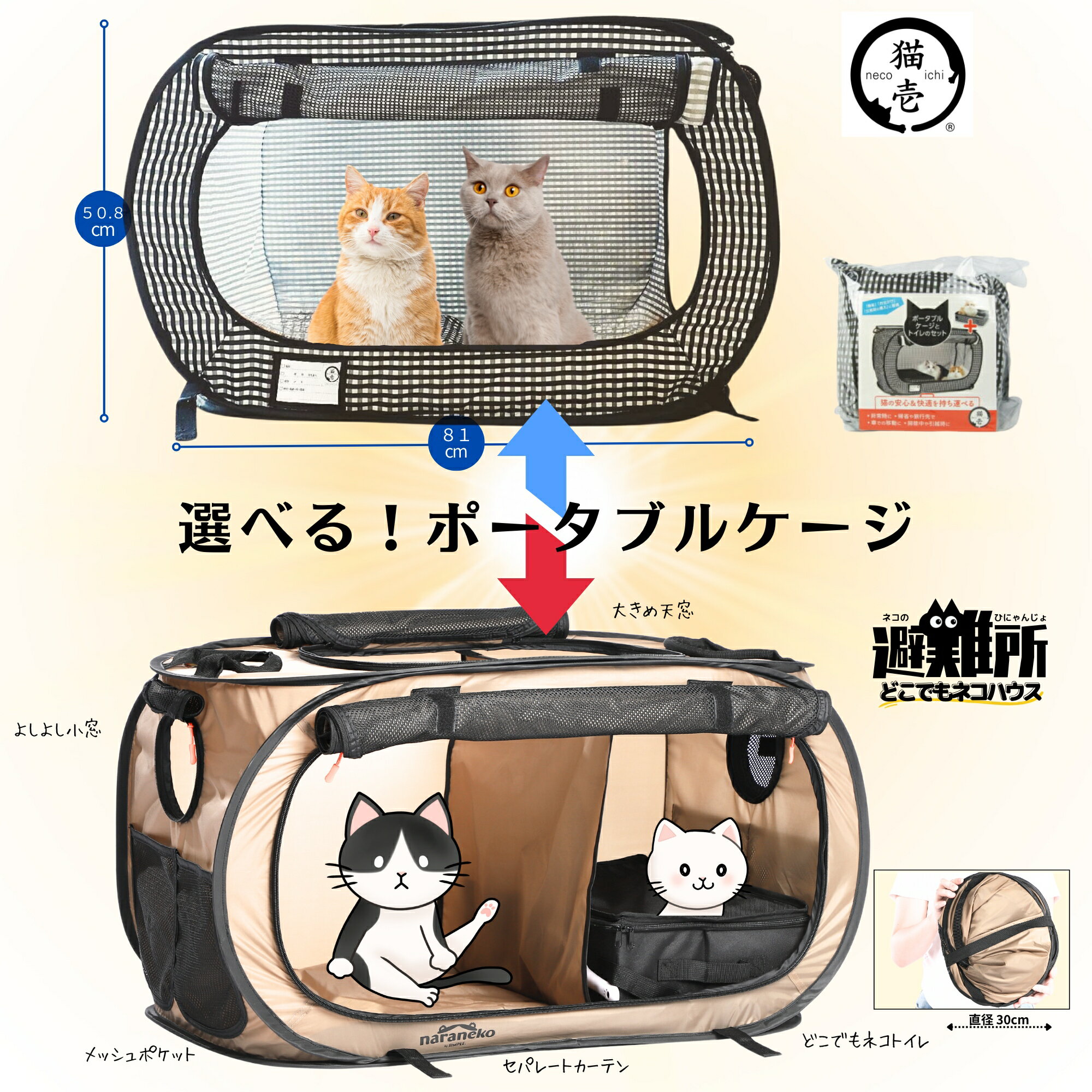 商品情報セット内容・猫壱ポータブルケージ・とにかくたくさん入るリュック・折りたたみ蓋付きトイレ+スコップ・うんちが臭わない袋20枚・フードとお水が入るボトル・折りたたみボウル2個・ネコが落ち着くネット・避難時持ち物チェックリスト・防水レスキューステッカー2枚追加送料について沖縄・一部離島(小笠原諸島、奄美群島など)へのお届けには、別途送料が発生いたします。 ご注文後に当店にて送料を修正し、改めてご案内いたします。 本州・北海道・沖縄本島は自動計算された送料のままです。ネコのための防災DXセット「猫壱 ポータブルケージ&大容量リュック&避難時持ち物チェックリスト付き」【 猫 / 災害 / 地震 / 台風 / 避難 / 緊急 / 非常時 / 持ち運び / 備蓄 】 避難時に最低限必要なモノに加えて、大人気の猫壱ポータブルケージととにかくたくさん入るリュックをセットにしました。 愛猫のための防災セットデラックス 避難時に最低限必要なモノに加えて、大人気の猫壱ポータブルケージととにかくたくさん入るリュックをセットにしました。これに水やお気に入りのフード、トイレ砂等を加えて災害や非常時に備えましょう。 持ち物チェックリスト付き 高コスパで充実のセット内容 あれもこれも全部ひとまとめに入れられる ネコの防災グッズは何を揃えたらいいか分からない方 もしものときの備えを充実させたい方 これからネコの防災について考える方 こんにちは!店長の伊藤です。最近本当に災害のニュースが多くて明日は我が身かと思い、愛猫と避難するときにどうしたらいいかを真剣に考えて考え抜いて創りました。もしものときネコちゃんに必要なものって思ったよりたくさんありますよね!?お水、食べ物、猫砂、衛生用品などなど・・そんなあれもこれも全部ひとまとめに入れられてサッと持ち出せるように、とにかく全てをひとまとめにできる大きなリュックにしました。しかも、いざというとき底の部分のチャックを開けると、さらに大きくなりもっと収納できるようになります。折りたたみケージは、猫壱さんポータブルケージ、もしくはナラネコ製の『どこでもネコハウス』をお選びいただけます。折りたたむと直径30cmの円形ですが、広げると猫さん2匹がすっぽり入る大型ケージに大変身。折りたたみトイレを入れても十分余裕があります。もしもの時のために持っておいて損はなし!です。さらに、「避難時持ち物チェックリスト」が付いてきます。避難所での生活に必ず必要なものやあると便利なグッズをまとめました。このチェックリストをもとに防災準備・備蓄を進められますね!他にも避難時に必ずと言っていいほど必要なものばかりですので、是非愛猫さんのためにご検討下さい!セット内容・猫壱ポータブルケージ or どこでもネコハウス・とにかくたくさん入るリュック・折りたたみ蓋付きトイレ+スコップ・うんちが臭わない袋20枚・フードとお水が入るボトル・折りたたみボウル2個・ネコが落ち着くネット・避難時持ち物チェックリスト・防水レスキューステッカー2枚 1~2日以内に発送します。1