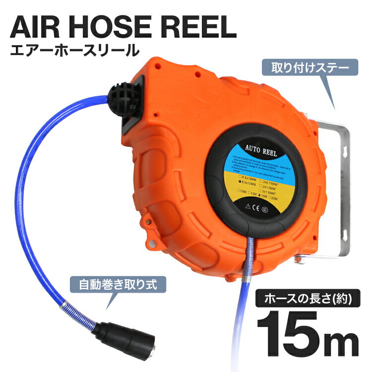 とっても便利な自動巻上げエアーホールリール 15mです。 天吊フックで天井やパイプに、付属のブラケットで壁、天井に取り付け! 最大15mのエアーホースを自由に引き出し、使わないときは少し引っ張ると自動で巻き上げ! エアーコンプレッサー、エアータッカー、エアーダスター、エアードリル、エアーグラインダーとの相性抜群です!! 商品仕様 最高使用圧力:8.0kgf/c ホースの長さ(約):15m エアー入力ホース長さ(約):910mm ホースの外径(約):12mm ホースの内径(約):8mm 材質:ポリウレタン樹脂 装着カプラー:1/4NPT 本体サイズ(約):幅350×奥行150×全高280mm 重量(約):4.3kg 注意事項 ・箱がつぶれている場合もございますが商品に問題はありません。 ・海外製品で、簡易梱包での輸入のため風防に擦れや多少の小キズなどがある場合がございますが、商品自体には問題ありませんのでご了承下さい。 ・仕様・デザインは改良のため予告なく変更することがあります。 【保証期間】 30日間※商品到着後30日以内の初期不良・破損のみご対応させていただきます。 ▼検索キーワード エアホースリール 吊り下げ式 ツールパワー エアーホースリール 電動工具 エア工具 エアーホース 作業 壁掛天吊り 工具 春 夏 秋 冬 お正月 帰省 クリスマス 敬老の日 母の日 父の日 ギフト 誕生日 プレゼント 父の日ギフト 誕生日プレゼント 結婚祝い 福袋 メンズ レディース 男性 女性 あす楽 人気 おすすめ 送料無料 WEIMALL セール 格安 安い 激安▼エアー工具はこちら