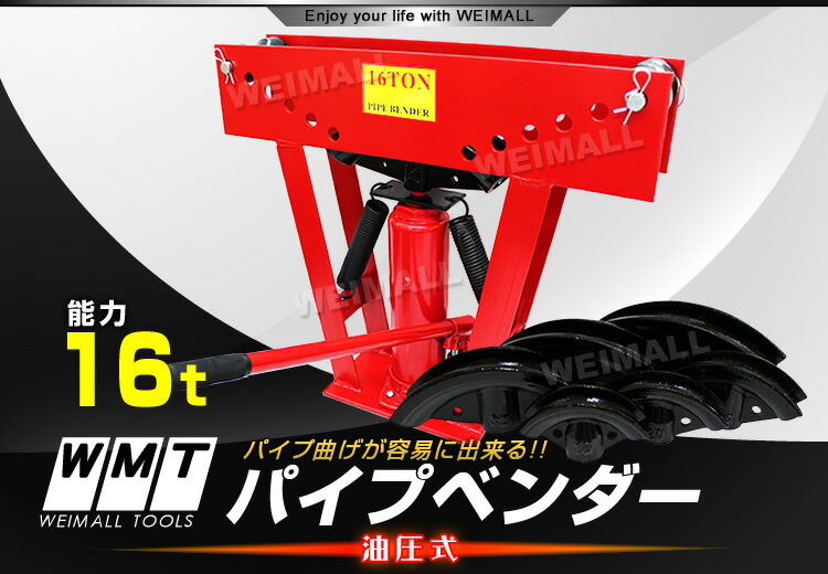 パイプ曲げにとっても便利な16トン油圧式パイプベンダーです。 ロールバー、ビニールハウスのパイプ曲げ加工など様々な用途に使用できます。 本体を寝かして使用すれば長いパイプも曲げることが可能です。 付属のアダプターは8種類、最大90°まで曲げれます。 商品仕様 油圧能力:16t アダプター:1/2、3/4、1、1-1/4、1-1/2、2、2-1/2、3(8種類) 重量(約):30kg 注意事項 ・パイプの材質・厚さによっては、曲がり方や破損の恐れがございます。大変恐縮ではございますが、お客様の自己責任で使用していただくようお願いいたします。 【保証期間】 30日間※商品到着後30日以内の初期不良・破損のみご対応させていただきます。 ▼検索キーワード パイプベンダー パイプ曲げ機 パイプ曲げ パイプ 加工 激安 最安値 特別価格 セール 人気 おすすめ 送料無料 WEIMALL