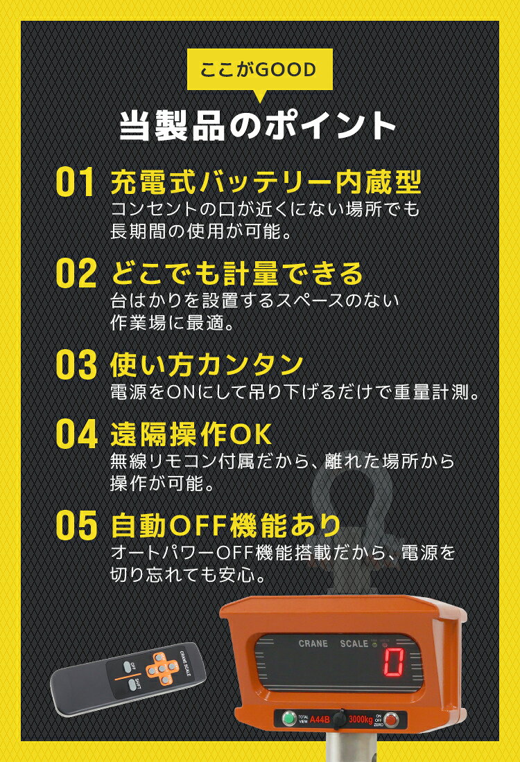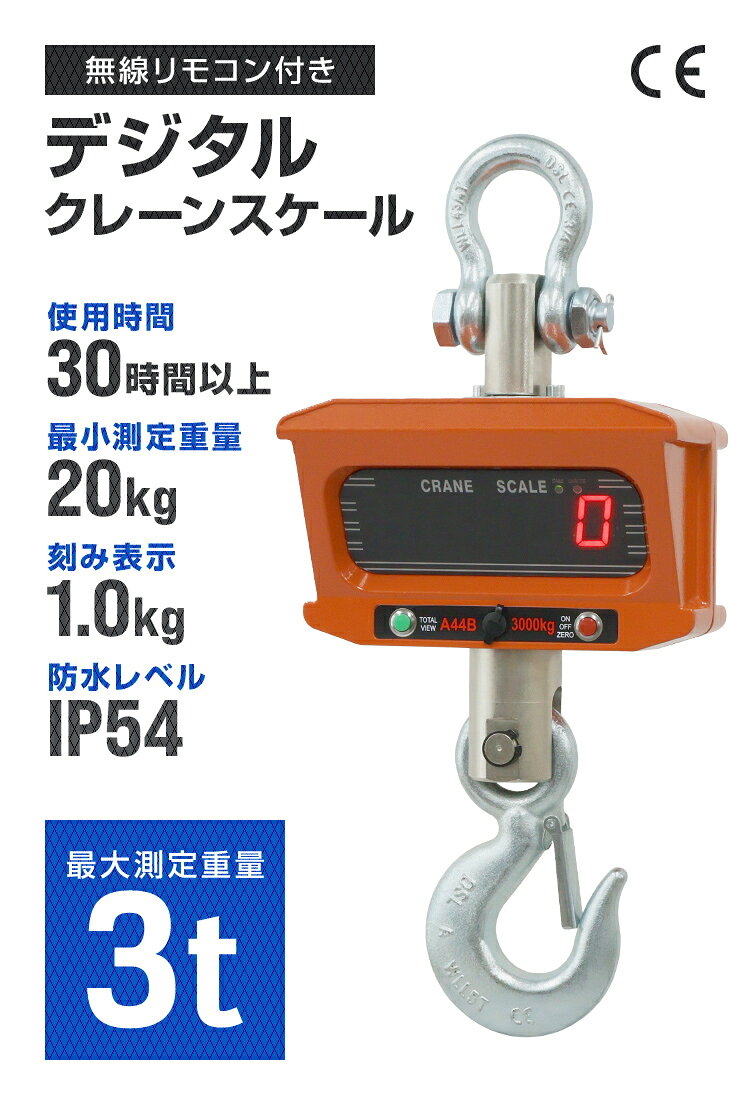 【SS限定最大20%OFFクーポン】クレーンスケール 充電式 デジタルクレーンスケール 3t(3000kg) 吊秤 吊りはかり リモコン付き [デジタル吊りはかり 吊り秤 デジタル クレーン スケール 計量 計測 吊り下げ 大型 はかり] 送料無料