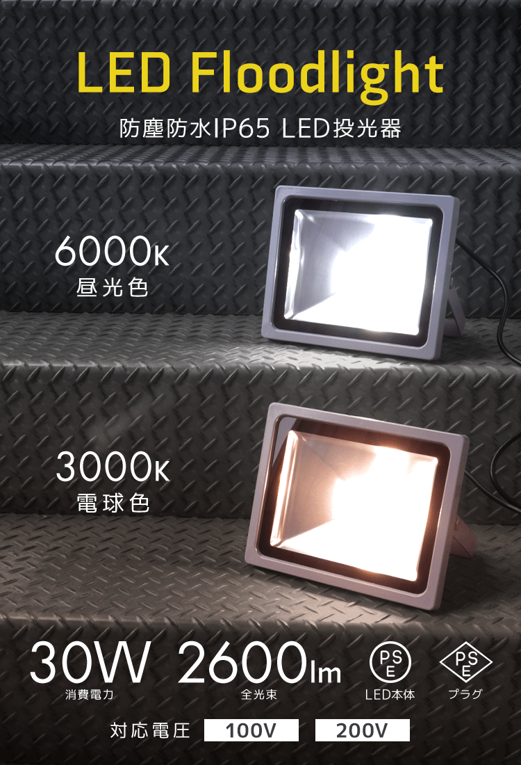 【最大2000円OFFクーポン】【2個セット】LED 投光器 30W 300W相当 LED投光器 昼光色 電球色 IP65 広角120度 ledライト LED投光機 看板灯 集魚灯 作業灯 舞台照明 屋内 屋外 照明 ポータブル投光器 防水加工 ACコード付 1年保証 送料無料