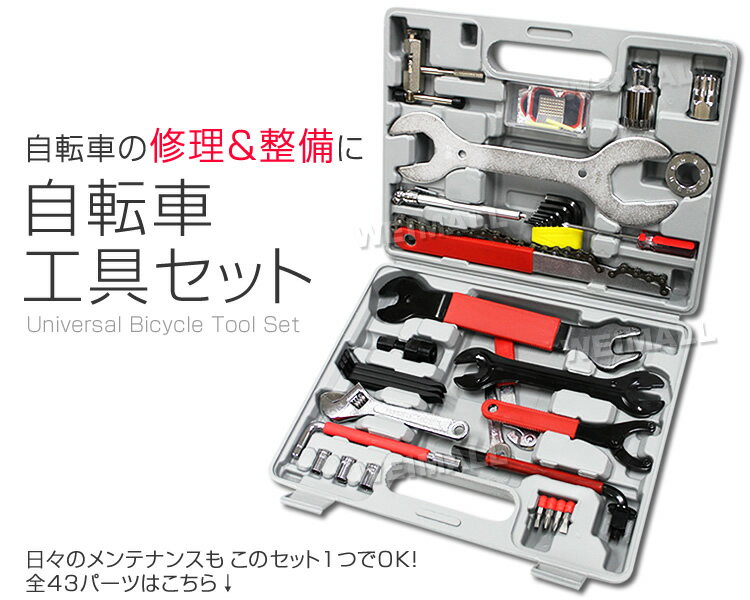 【最大1000円OFFクーポン】自転車 工具セット 自転車工具セット 自転車工具 自転車修理工具セット 43pc 【マウンテンバイク MTB ロードバイク クロスバイク】 [自転車修理工具 メンテナンス 工具 サイクルツールセット 整備] 送料無料