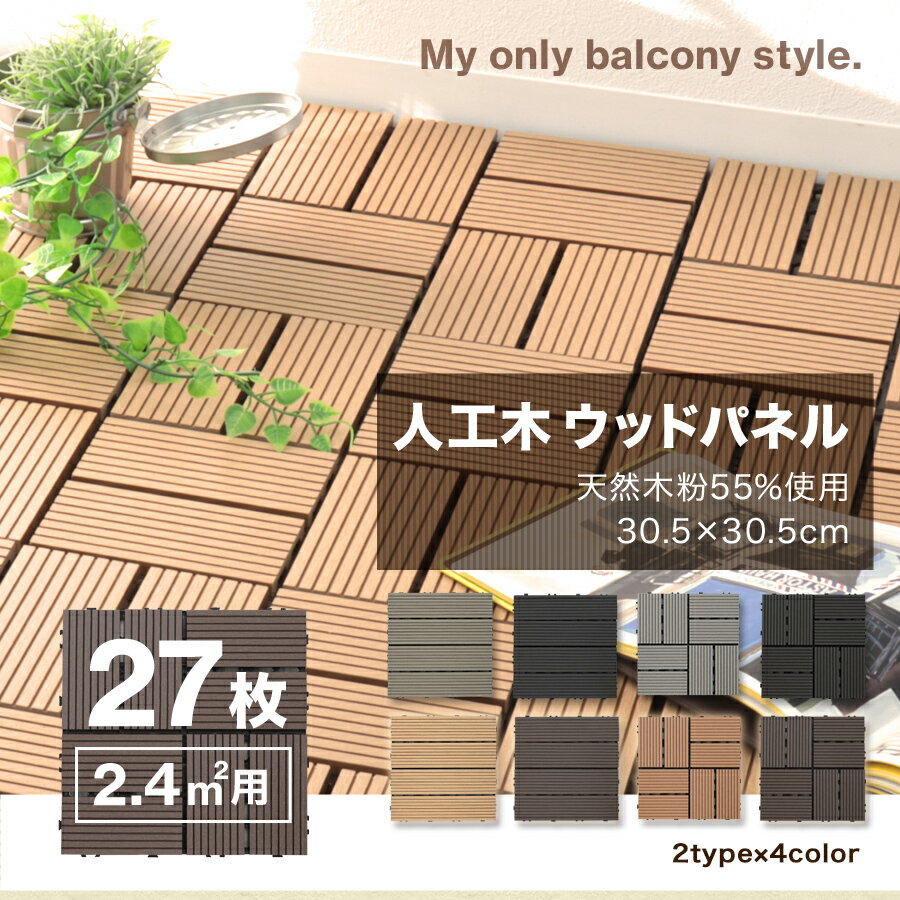 【3日20時〜SALE!最大80%!】人工木 ウッドパネル 27枚セット ウッドタイル 天然木粉 2.4平米用 ジョイント式 29.5×29.5cm ウッド ウッドデッキ パネル タイル ジョイント 木 屋上 27枚 正方形 フロアデッキバルコニー エクステリア ガーデン 送料無料