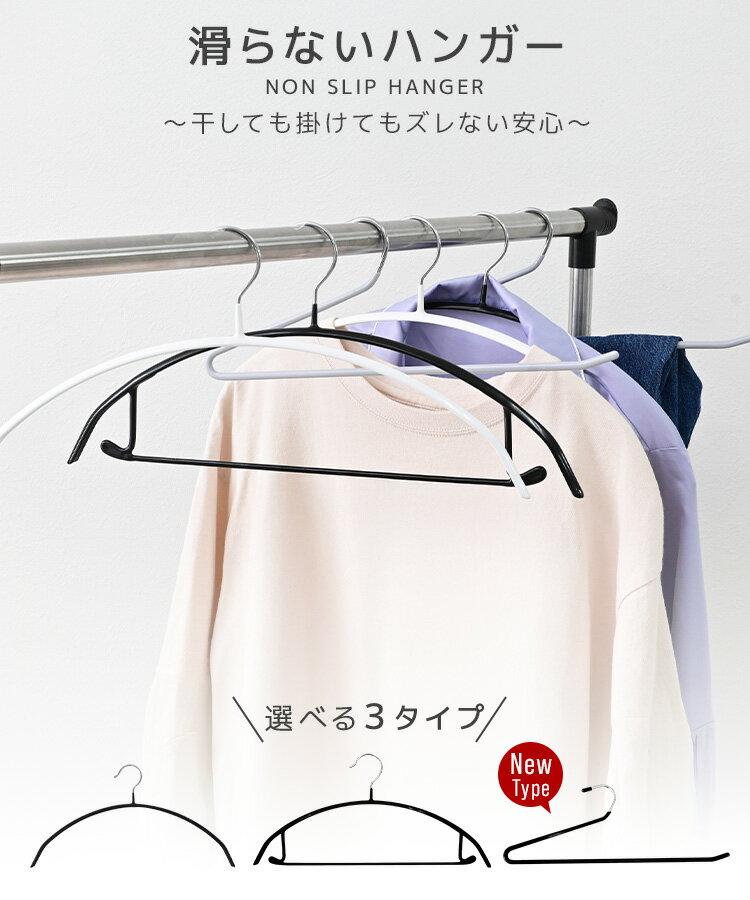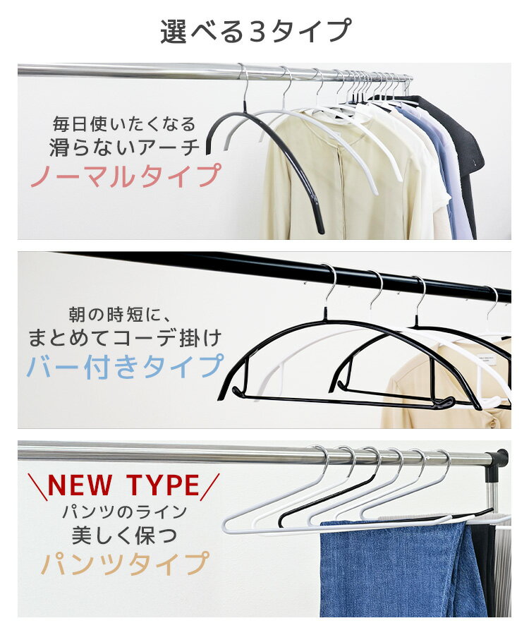 【50%OFFクーポンで1本20円〜】滑らないハンガー スリム 5〜200本セット ハンガー すべらない 選べる3タイプ バー付き すべらないハンガー パンツ ズボン スカート 型崩れ防止 おしゃれ ラウンド型 跡がつかない 跡が付きにくい スチール シンプル 乾湿両用 洗濯 収納 物干し