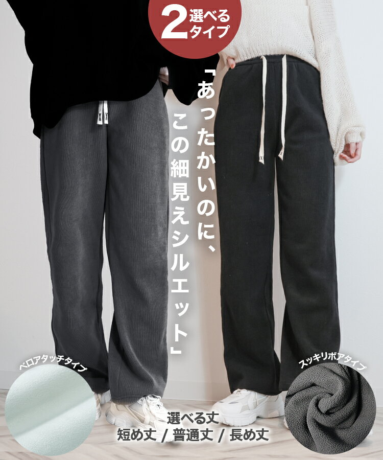 \選べる丈感・ カラー/ 縦ラインで細見え! あったか裏起毛ワイドパンツ♪ 大人気の裏起毛ワイドパンツから2025年新作! スッキリボアタイプが新登場! リブが細かくなり、ごわつきのないスッキリとした印象に♪ さらに、外気の侵入を防ぎ保温性、防風性UP! 素材感が可愛い冬らしいワイドパンツで 冬のラフなカジュアルコーデにぴったりな一着です。 裏起毛生地は、ふわふわの手触り♪ 着たときにヒヤッとしないので 寒い冬でも快適に過ごせます! ウエストはゴム仕様! ストレスフリーで快適な着心地です。 ゆったりとしたワイドシルエットで 身体のラインを拾い過ぎない体型カバー設計◎ 絶妙なボリューム裾で脚長効果! ダボっとしすぎないこだわりの細見えシルエットです。 商 品 詳 細 カラー ネイビー ブラック アイボリー グレージュ ココア ピンクベージュ サイズ ■Mサイズ 【ベロアタッチタイプ】 ウエスト:58cm ヒップ:100cm 裾幅:45cm 着丈(普通丈):94cm 着丈(長め丈):98cm 【スッキリボアタイプ】 ウエスト:60cm ヒップ:100cm 裾幅:45cm 着丈(短め丈):94cm 着丈(普通丈):97cm ■Lサイズ 【ベロアタッチタイプ】 ウエスト:62cm ヒップ:104cm 裾幅:46cm 着丈(普通丈):94cm 着丈(長め丈):99cm 【スッキリボアタイプ】 ウエスト:62cm ヒップ:104cm 裾幅:46cm 着丈(短め丈):95cm 着丈(普通丈):98cm ■LLサイズ 【ベロアタッチタイプ】 ウエスト:66cm ヒップ:108cm 裾幅:47cm 着丈(普通丈):94cm 着丈(長め丈):100cm 【スッキリボアタイプ】 ウエスト:64cm ヒップ:108cm 裾幅:47cm 着丈(短め丈):96cm 着丈(普通丈):99cm ■3Lサイズ 【スッキリボアタイプ】 ウエスト:67cm ヒップ:112cm 裾幅:48cm 着丈(短め丈):97cm 着丈(普通丈):100cm ■4Lサイズ 【スッキリボアタイプ】 ウエスト:70cm ヒップ:114cm 裾幅:49cm 着丈(短め丈):98cm 着丈(普通丈):101cm ■5Lサイズ 【スッキリボアタイプ】 ウエスト:73cm ヒップ:116cm 裾幅:50cm 着丈(短め丈):99cm 着丈(普通丈):102cm ※1-2cm程度の誤差が生じる場合がございます。 素材 ポリエステル、ポリウレタン 保証期間 30日間 ※商品到着後30日以内の初期不良・破損のみご対応させていただきます。 注意事項 ・他の衣類へ色移りや色落ちする場合があります。 ・洗濯の際、縮む場合があります。 ・洗濯やアイロンで風合い、色合いが変わる場合があります。 ・洗濯時は単品洗い、洗濯ネットを使用してください。 ・アイロンをする場合は、あて布の使用を推奨します。 ・漂白剤、蛍光増泊剤は使用しないでください。 ・商品は、モニターによって色合いが異なって見える場合があります。 ・仕様・デザインは改良のため予告なく変更することがあります。 送料について 送料無料 【ベロアタッチタイプ】 ※北海道・沖縄・離島等、一部地域は別途中途料がかかります。 ※配達地域や交通事情等により、希望配達日時にお届けできない場合がございます。あらかじめご了承ください。 【スッキリボアタイプ】 ※ポスト投函にてお届けいたします。在庫状況によっては業者変更となる場合がございます。 ※代金引換・配送日時のご指定ができません。 ▼検索ワード レディース ボトムス パンツ ズボン 長ズボン ロングパンツ ロング丈パンツ ロング丈 ロング 裏起毛 起毛 裏起毛パンツ サイドポケット ポケット 大きいサイズ 大きい 大きめサイズ 大きめ 小さいサイズ 小さいサイズ 小さい 小さめサイズ 小さめ M Mサイズ L Lサイズ LL LLサイズ ウエストゴム ゴム リラックス リラクシー イージーパンツ イージー ウエスト紐 調節可能 調節できる 調節 調整可能 調整できる 調整 動きやすい 歩きやすい 柔らかい やわらかい 美脚 無地 シンプル スタンダード ベーシック 定番 着回し カジュアル ナチュラル おしゃれ オシャレ 可愛い かわいい きれいめ キレイめ 大人 オトナ 上品 オフィススタイル オフィスカジュアル オフィス 会社 職場 職場着 仕事着 仕事 通勤 おうち時間 部屋着 家着 お家着 ルームウェア ナイトウェア 散歩 旅行 お出かけ 外出 ゆったり 楽ちん 楽チン 20代 30代 40代 50代 60代 秋冬 秋服 冬 冬服 冬物 服 敬老の日 母の日 父の日 ギフト 誕生日 プレゼント 父の日ギフト 誕生日プレゼント 結婚祝い 福袋 メンズ レディース 男性 女性 あす楽 人気 おすすめ 送料無料 WEIMALL GARAGECOLLECTION WEIWEIホールディングス▼期間限定!▼ 外出時もフィットネスも就寝も1日中使える! ▼ ナイトブラ ▼ 上向きまつげを長時間キープ! ▼ ホットビューラー ▼ \SNSで話題・人気の商品/▼ おすすめアイテム ▼ ネックウォームリング 電熱ウェア モバイルバッテリー スラックスハンガー 着る毛布 U字型抱き枕