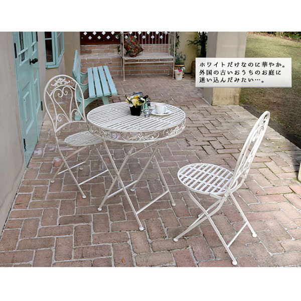 アンティーク調 アイアンチェア2脚 ガーデンチェア 幅42cm 屋外用 折り畳み式 SPL-6627 ブランティーク