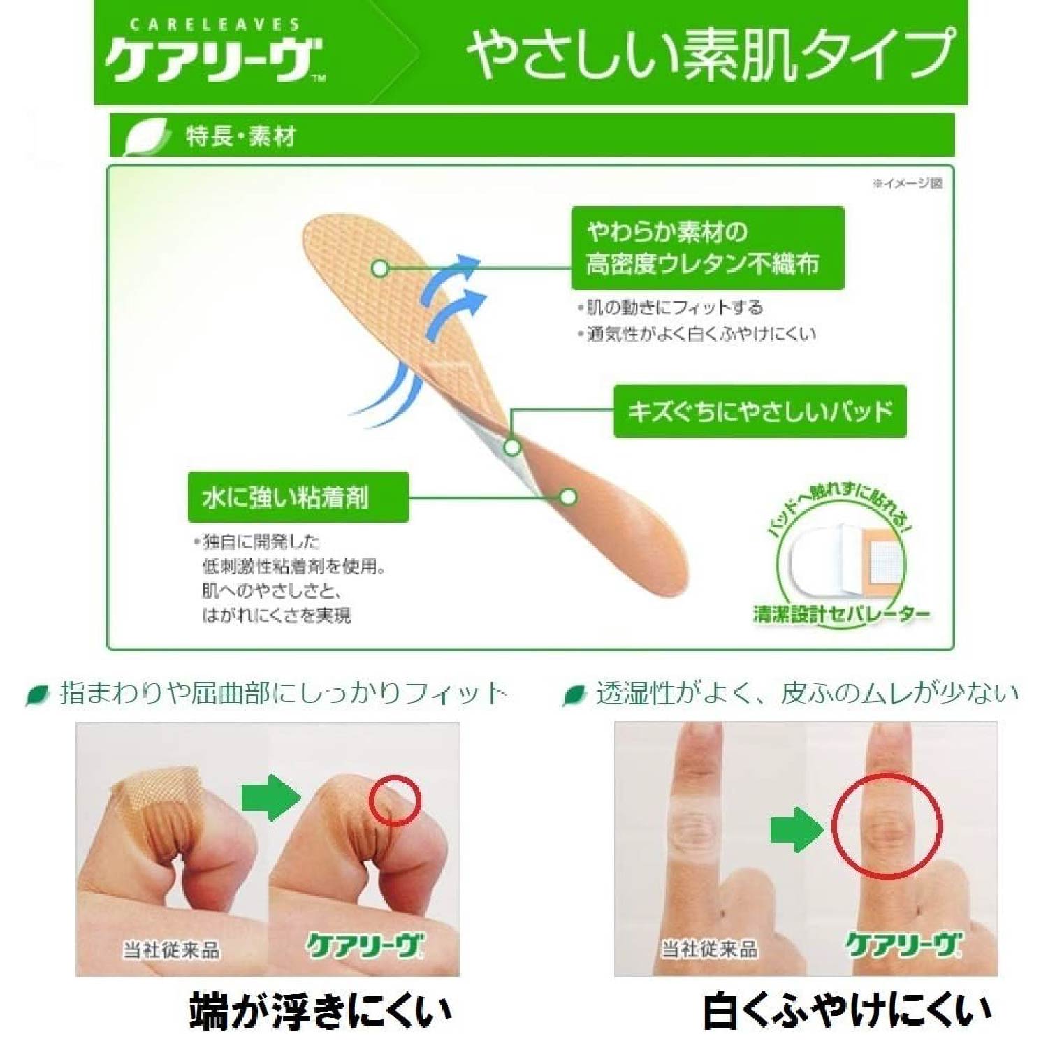 リニューアルに伴いパッケージ・内容等予告なく変更する場合がございます。予めご了承ください。 名 称 《セット販売》 ケアリーヴ ビッグサイズ 関節部用 ベージュ CL7B 内容量 7枚×20個/サイズ:60mm×80mm(パッド部:35mm×45mm) 特 徴 ◆大きなキズにフィット!◆素肌タイプ ◆やさしい素肌タッチ。しなやかに肌になじんで、素肌のような貼りごこち。◆曲げてもフィット◆滅菌済 ◆高密度ウレタン不織布しなやかに肌になじみ、皮ふの動きにしっかりフィットするテープ。通気性がよいため、皮ふが白くふやけにくく、快適な貼りごこち。 ◆ネットつき特殊パッドキズぐちにつきにくく患部をやさしく保護。はがす時も痛くありません。◆水に強い粘着剤 独自に開発した低刺激性粘着剤を使用。肌へのやさしさと、はがれにくさを実現しました。 使用方法 ・創傷面にパット部分をあて、関節を35度〜45度程度曲げた状態で、テープ部分を伸ばさずに貼ってください。 ・貼付部分の体毛をあらかじめカットしてから貼ると、はがす時の痛みを軽減できます。 医療機器届出番号 13B2X00218131170 区 分 一般医療機器/絆創膏/原産国 日本 ご注意 ●患部を清潔にし、粘着面がキズぐちにあたらないように使用してください。 ●パッド部分が水などでぬれて汚れた時は、新しいものに貼り替えてください。 ●本品の使用により発疹・発赤、かゆみ等が生じた場合は使用を中止し、医師又は薬剤師に相談してください。 ●はがす時は皮ふを傷めないよう体毛の流れに沿ってゆっくりはがしてください。 ●直射日光をさけ、なるべく湿気の少ない涼しい、小児の手のとどかない所に保管してください。 ◆本品記載の使用法・使用上の注意をよくお読みの上ご使用下さい。 販売元 ニチバン株式会社 東京都文京区関口2-3-3お問合せ先 お客様相談室 電話:0120-377218 広告文責 株式会社ツルハグループマーチャンダイジング カスタマーセンター 047-409-4023 JANコード:4987167037291