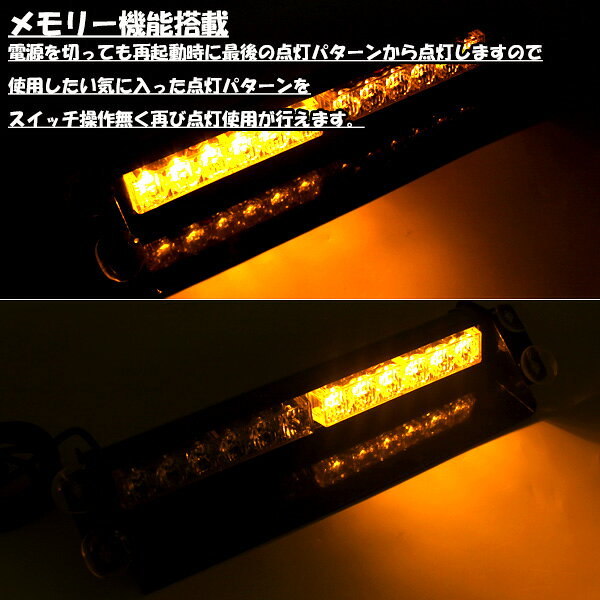 【今だけP5倍★25日0:00〜23:59】 LED ライトバー 12V 24V 黄色 イエロー 【点灯9パターン!! メモリー機能搭載!!】 車用品 フラッシュライト 警告灯 パトランプ 誘導灯 回転灯 点滅灯 シガーソケット ボート フロントガラス ダッシュボード カー用品