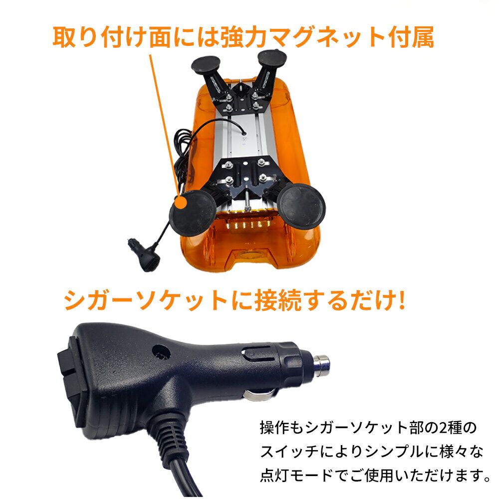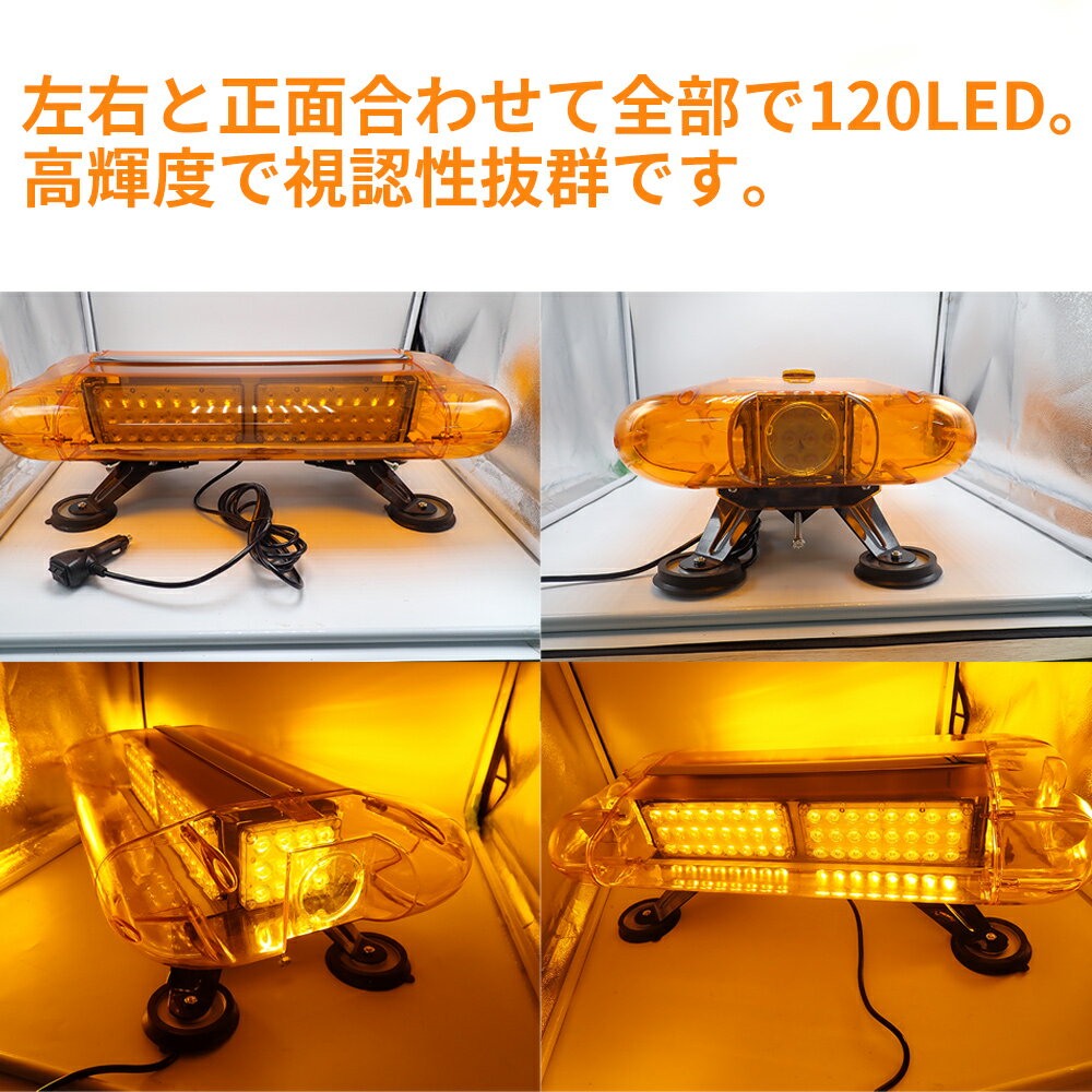 回転灯 LED 黄 イエロー アンバー 高輝度 12v 24v ユニットタイプ 80W 120LED 強力マグネット シガーソケット 警告灯 道路維持管理車両用 作業灯 誘導灯 夜間 道路維持 作業 乗用車 大型車 16パターン ライト
