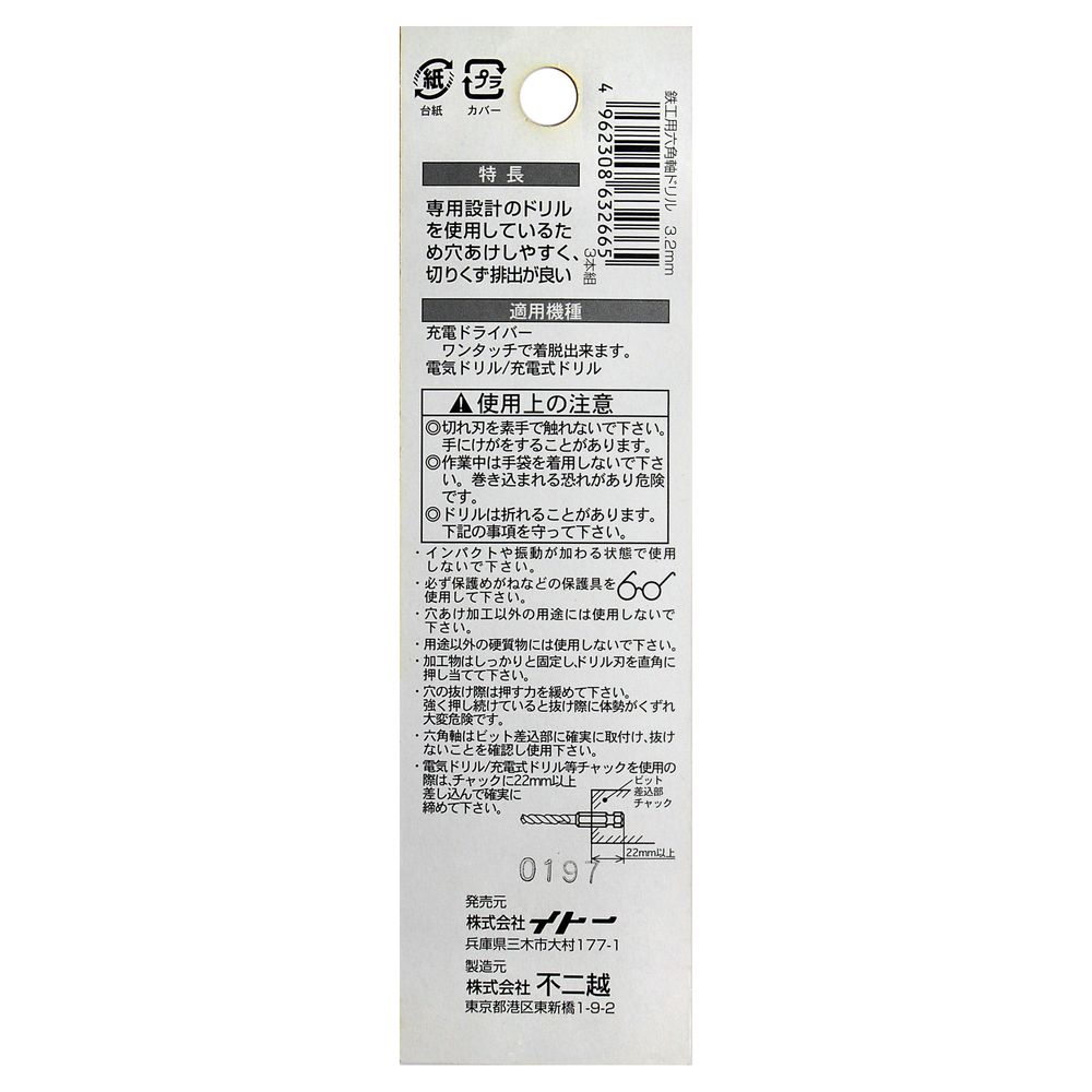 ナチ NACHI 六角軸鉄工ドリル 金属 金工 先端工具 インパクトドライバー 対応 3本組 3.2 mm ミリ 6SD3P3.2 4962308632665