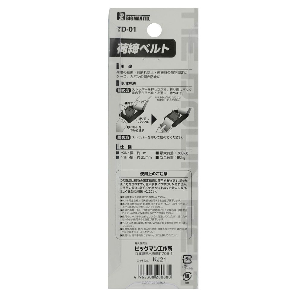 ビッグマン BIGMAN 荷締ベルト 1m TD-01 耐荷重280kg 作業工具 作業雑貨 4962308280880