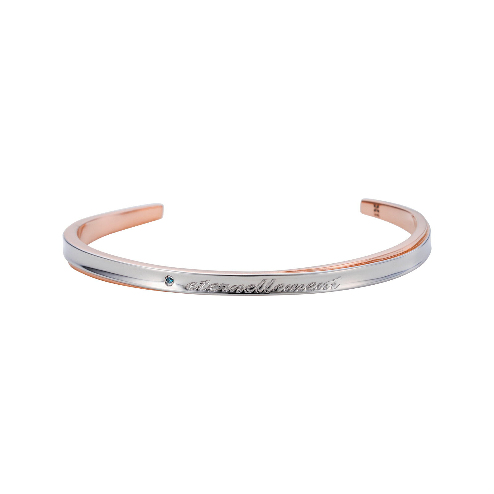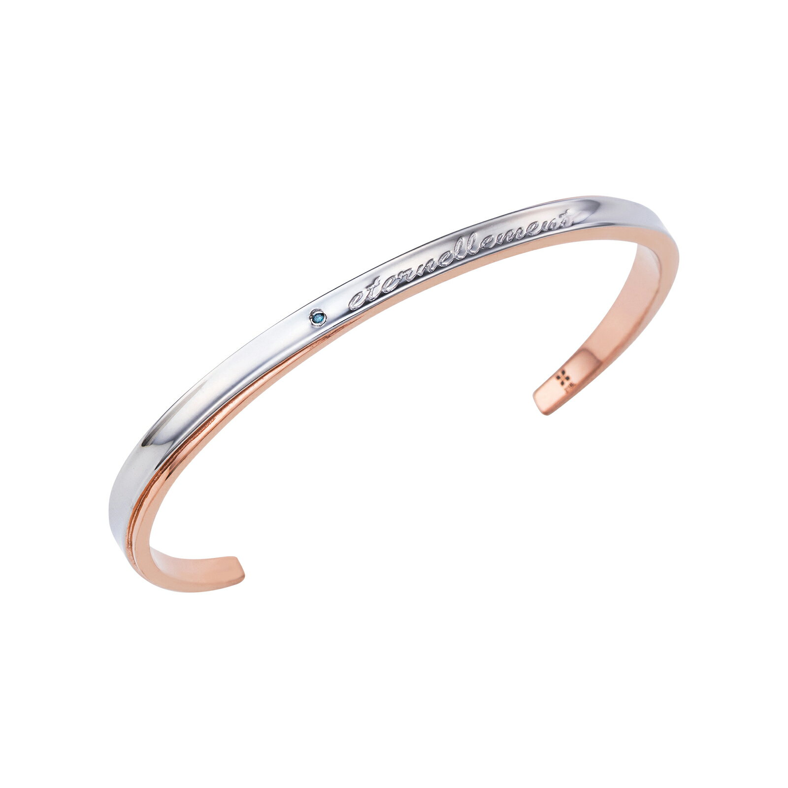 緩やかに重なったクロスのラインに「eternellement(永遠)」のメッセージがデザインされたレディースバングル。 表にはサムシング・フォーにちなんで、青く輝くブルーダイヤモンドをセットしました。 ヨーロッパでは、結婚式当日、花嫁は青いものを身に着けると幸せになれる「Something Four」という言い伝えがあります。 金属アレルギーが起こりにくいサージカルステンレス316Lという素材でお作りしております。 医療器具にも使用されている高品質な安心素材です。 傷がつきにくく錆びたりしないので、専用のお手入れがいらないのも魅力の一つです。 >ペアはこちら >レディースバングル一覧 商品番号 4SBG029GO サイズ 口幅:約3.4cm、内周:約17cm 素材 サージカルステンレス316L 石 ブルーダイヤモンド 加工 PVDコーティング 寸法 幅:約4.5mm 重量 約9.3g メッセージ eternellement(永遠) 刻印 バングルの内側に10文字まで可能 ※刻印を希望する方は必ずこちらをご確認ください 《 注意事項 》 ●ステンレス製のバングルは素材の性質上、バングルの一部に力が加わるような開閉や強い力での開閉は、商品の石取れや破損の要因となることがございます。お取り扱いにはご注意くださいますようお願いいたします。 ●サージカルステンレスは金属アレルギーが起こりにくいとされていますが、絶対にアレルギーが起こらないという素材ではありません。 ●商品サイズは人の手で計測しておりますので、数mmの誤差がある場合がございます。 ●ラッピングや巾着ポーチのデザインは予告なく変更となる場合がございます。 ●お使いの環境(モニター、ブラウザ等)の違いにより、色の見え方が実物と若干異なる場合がございます。