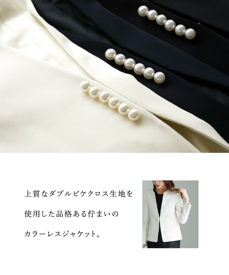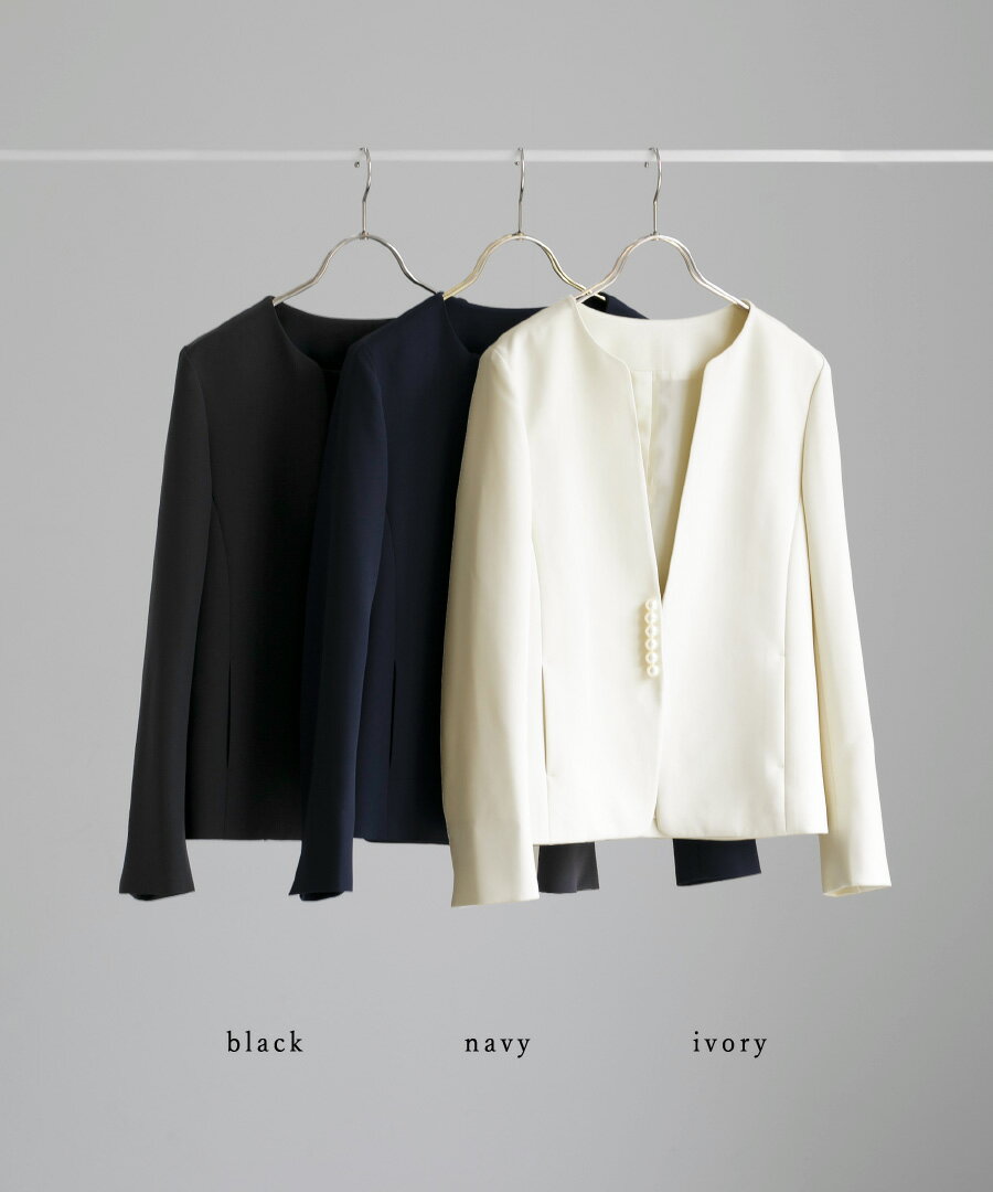 evidence メーカー希望小売価格はメーカー商品タグに基づいて掲載していますivory navy black detail 商品説明 UV CUT・速乾・接触冷感・防シワ・ストレッチ・手洗い可 【多機能すぎるジャケット】 ダブルピケクロス・パール調デザインカラーレスジャケット ■ WHITE JOOLA ■ 「 存在感ある 品格ジャケット 」 上質なダブルピケクロス生地を使用した 品格ある佇まいのジャケット。 顔まわりをすっきりとみせる フェミニンなカラーレスデザイン。 フロントに6粒のパールがあしらわれ 品格ある存在感が満ち溢れます。 無駄のない美しいシルエットで コーディネートの主役に。 総裏地仕立てで厚みを持たせることで 美シルエットを保ち、ダメージを防ぐ効果も。 長袖の袖先はスリット入りになっており ドレッシーな印象を与えます。 パンツ合わせでオフィスはもちろん、 タイトスカート合わせでフォーマルに、 デニムで外してデイリーにも◎ 同素材のパンツと合わせて セットアップでの着用もおすすめです。 〈〈 ダブルピケ シリーズ 〉〉 ぷりっとしたハリのある中肉素材で 上質な印象を与える素材。 “ 嬉しい多機能素材 ” ●ホームケア… おうち洗いできるイージーケア ●ストレッチ … 2WAYストレッチ ●UVカット … 紫外線遮蔽率99%以上 ●クールタッチ … ひんやり感じる接触冷感 ●クイックドライ … 速乾性に優れ快適 ●防シワ … シワになりにくくお手入れラクチン 〈 12 item 〉 ●パール調デザインカラーレスジャケット/品番:775504 ●パール調キーネックデザインブラウス/品番:775505 ●リボンデザインフレアブラウス/品番:775506 ●シフォンジーお袖デザインブラウス/品番:724544 ●パールジャケット&美脚パンツ&ブラウス3点セットスーツ/品番:724547 ●BIGボウタイブラウス&美脚パンツセット/品番:724550 ●美脚テーパードパンツ/品番:724542 ●シアーレースお袖デザインブラウス/品番:724549 ●カラーレスジャケット/品番:724541 ●フレアー袖ジャケット/品番:724548 ●きちんと見えワンピース/品番:724543 ●フレアージャケット&パンツ&ブローチ3点セットスーツ/品番:724551 【 color 】 ●アイボリー[ 黄色がかったアイボリー ] ●ネイビー[ 深みのあるネイビー ] ●ブラック[ やわらかなブラック ] =================== 厚さ:★★★☆☆ 裏地:あり 透け感:なし 伸縮性:あり ケア:手洗い可 ※パールに気を付けてホームケアしてください シーズン:春・秋・冬 =================== 生地 ポリエステル94% ポリウレタン6% 裏地:ポリエステル100% パール:フェイクパール サイズ 程よく身体にフィットするシルエット S 着丈 55 肩巾 37.2 バスト 89 ウエスト 84 裾まわり 100 袖丈 57.5 袖巾 31.5 袖口 24 ーーー M 着丈 56 肩巾 38 バスト 92 ウエスト 87 裾まわり 103 袖丈 58 袖巾 32.5 袖口 24.5 ーーー L 着丈 57 肩巾 38.8 バスト 95 ウエスト 90 裾まわり 106 袖丈 58.5 袖巾 33.5 袖口 25 ーーー LL 着丈 58 肩巾 39.6 バスト 98 ウエスト 93 裾まわり 109 袖丈 59 袖巾 34.5 袖口 25.5 【 model 】 NOZOMI 167cm S着用 生産国 MADE IN CHINA(企画・検品は日本) 注意事項 ・室外の光や照明の当たり具合で、実際の色味と画像の色味に若干の違いが発生する場合がございます。 ・生産時期により、予告なくデザインの仕様やカラーの色味、素材が変更される場合がございます。 ・当商品は機械による生産の過程上、どうしても生地を織る際の糸の継ぎ目や多少のほつれ、他繊維の混紡、素材によるネップ・色ムラが生じる場合がございます。 ・同商品でも、形/サイズ/柄/生地感に多少の誤差が生じる場合がございます。 ・実寸サイズを測っているため多少の誤差が生じる場合がございます。 ・色落ち/色移りがある場合がございます。漂白剤は使用しないでください。 ・管理には万全を期してますが、姉妹店と在庫を共有しております為、ご注文のタイミングや、検品時の不良品の発覚等により商品をご用意出来ない場合がございます。