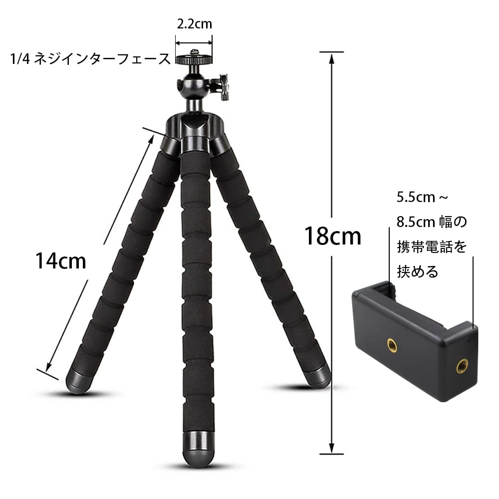 【送料無料】スマホ三脚 超小型 一眼レフ くねくね三脚 自撮り フレキシブル 卓上三脚 小型軽量 ミニ三脚 携帯電話/デジカメ/ビデオ カメラ/プロジェクター 大型 (黒い)