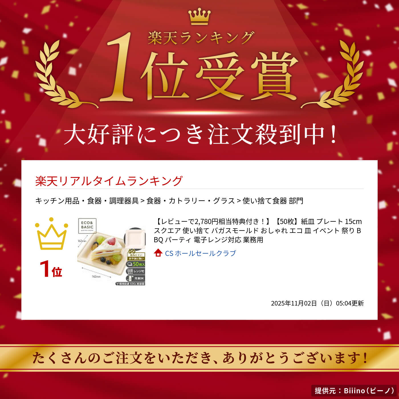 【レビューで2,780円相当特典付き!】【50枚】紙皿 プレート 15cm スクエア 使い捨て バガスモールド おしゃれ エコ 皿 イベント 祭り BBQ パーティ 電子レンジ対応 業務用