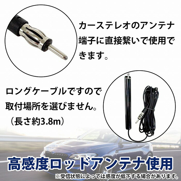 カーラジオ アンテナ 高感度 AM FM 汎用 ブースター DIN端子 両面テープ コード 3.8m ケーブル 車 旧車 国産車 外車 トラック