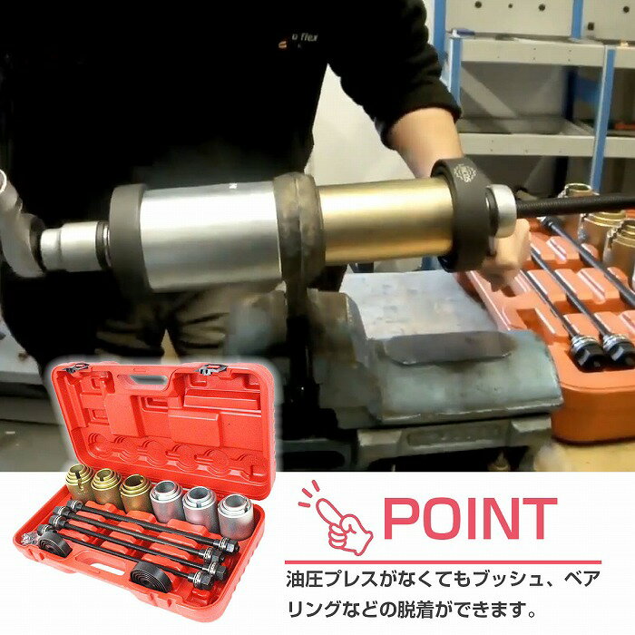 ブッシュ ベアリング シール 脱着 圧入 交換 特殊工具 SST 26点セット ケース付 油圧プレス 整備 治具 アタッチメント 当て金