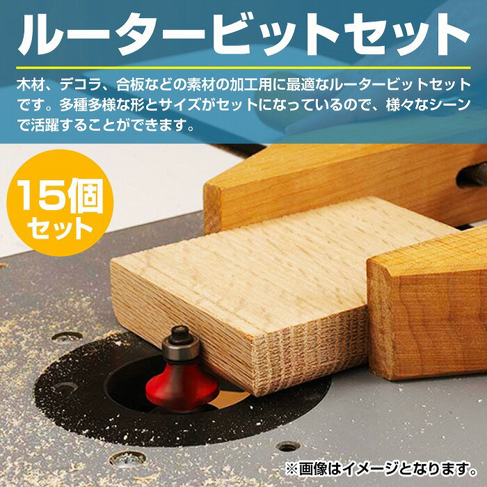 超硬 トリマービット 15本 セット ルータービット 木工 軸径 6.35mm 超硬 面取り 彫刻 電動 トリマー ビット DIY 15種 set