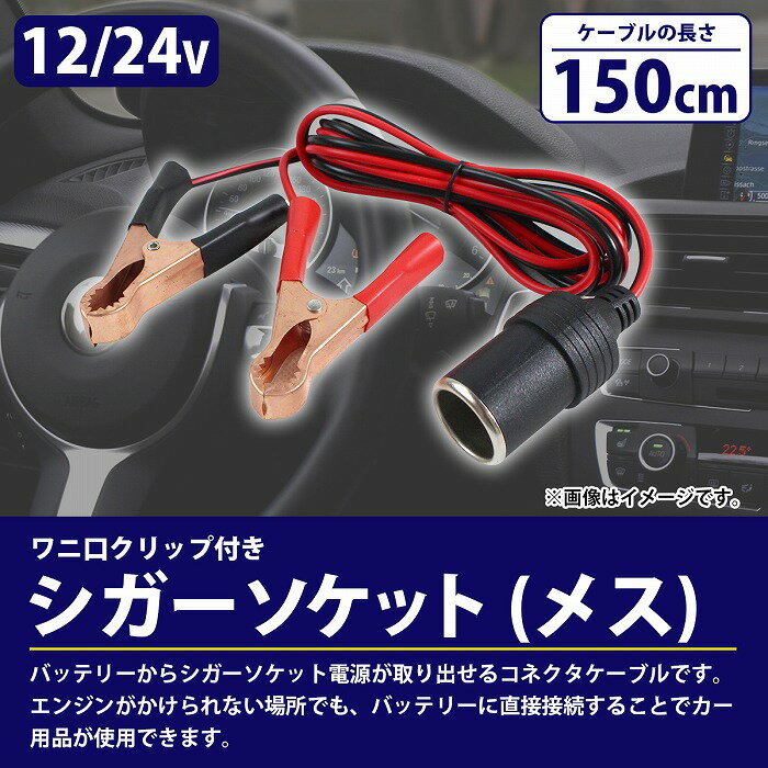 1.5M 150cm 12V/24V ワニ口 クリップ シガーソケット メス プラグ バッテリー 直結 電源 検品 動作確認 シガー コネクタ 車