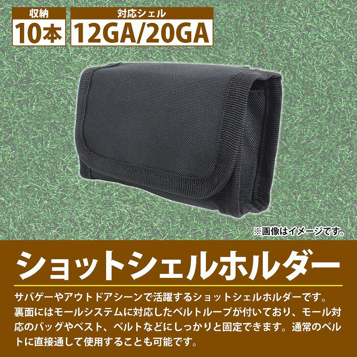 ショット シェル ホルダー 薬莢ケース ポーチ 12GA 12番 20GA 20番 10本 収納 散弾銃 ショットガン ゲージ 弾帯 バッグ 黒