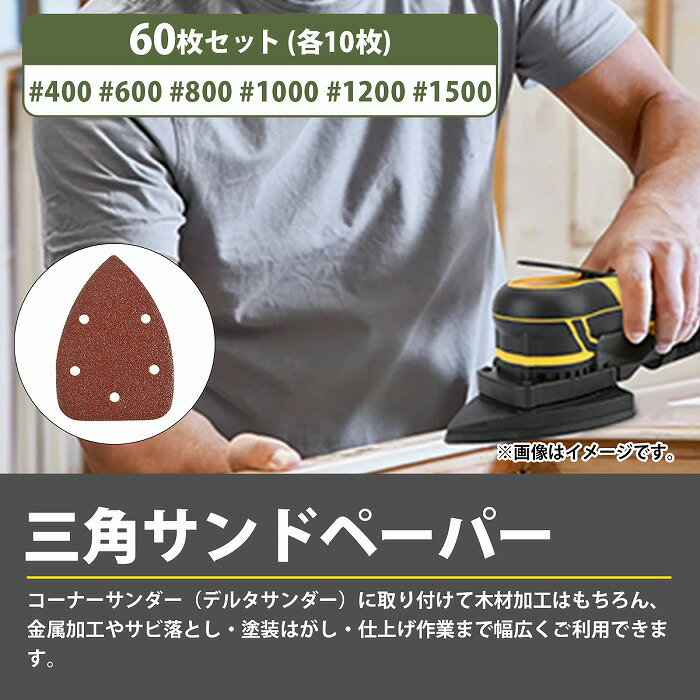 細目 60枚セット コーナーサンダー 140mm×90mm #400/600/800/1000/1200/1500 6種 各10枚 三角形 サンドペーパー 紙やすり
