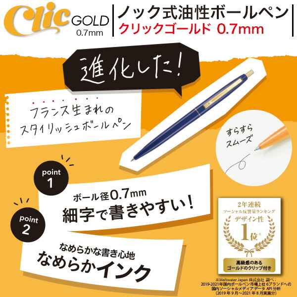 【送料無料】BIC 油性ボールペン 20本セット 黒 0.7mm ランダムアソート クリックゴールド シンプル おしゃれ カラフル ブラック ビック フランス製 筆記用具 筆記具 文具 文房具 ステーショナリー ビッグ ブランド 人気 おすすめ 大容量 まとめ買い ノック式 記念品
