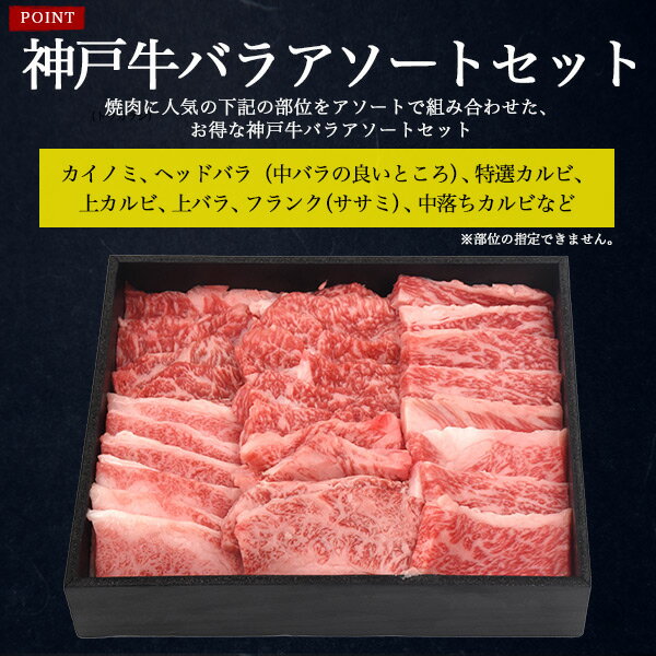 送料無料【 A5 神戸牛 バラ 焼肉 人気部位アソートセット 480g 約3〜4人用 】A5ランク カイノミ ヘッドバラ 特選カルビ 上カルビ 上バラ フランク 中落ちカルビなど ブランド黒毛和牛 国産 牛肉 最高級 お祝い 贈答品 贈答用 霜降り 証明書付き 箱入り ギフト 熨斗 のし対応
