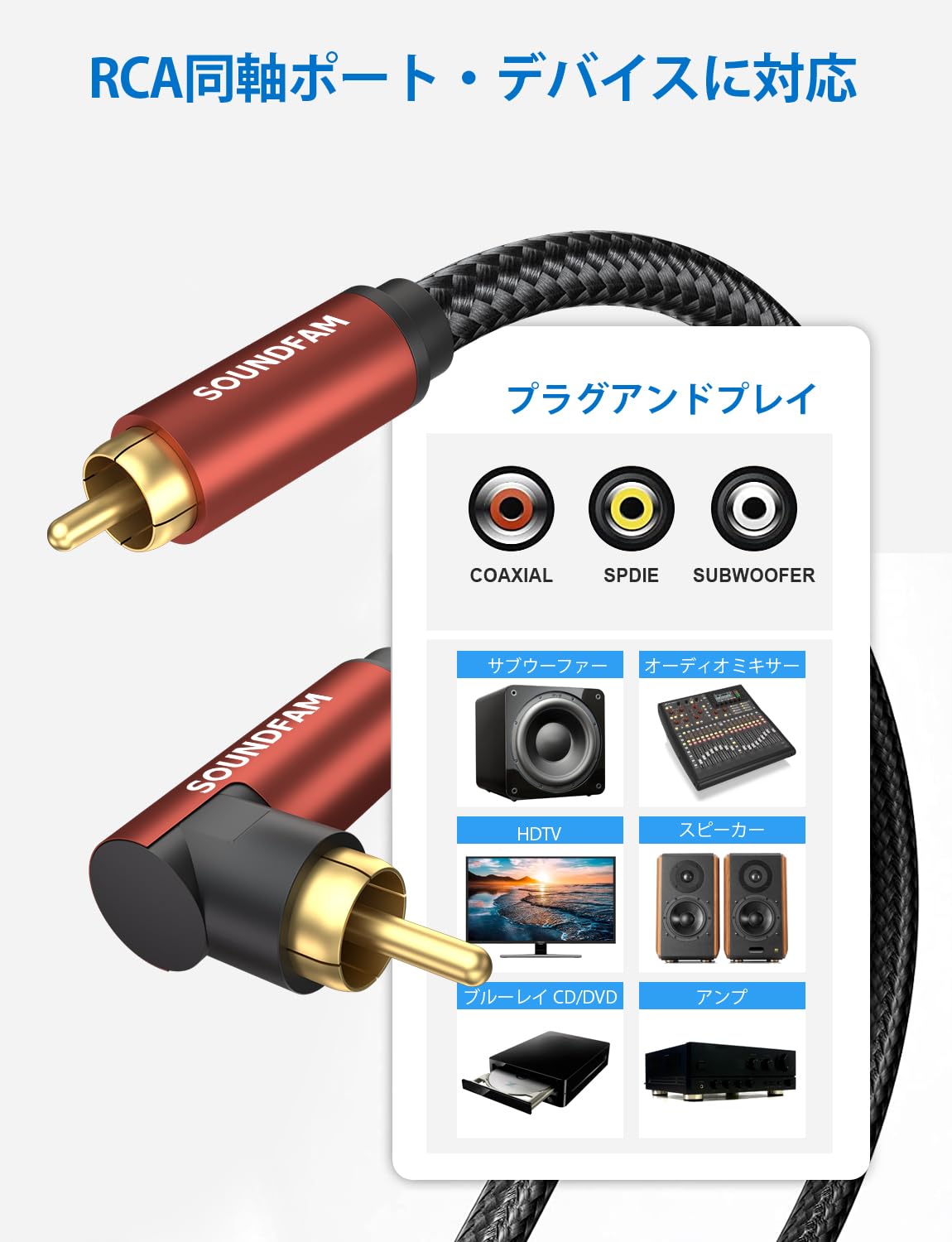 【送料無料】サウンドファム(SOUNDFAM)90度 RCAケーブル サブウーファー用ケーブル 直角 デジタル同軸RCAケーブル オス-オス ビデオオーディオケーブル 金メッキコネクター ホームシアター/HDTV/ホームステレオ/DVD用 グレー (ワインレッド-片側90°, 8M)
