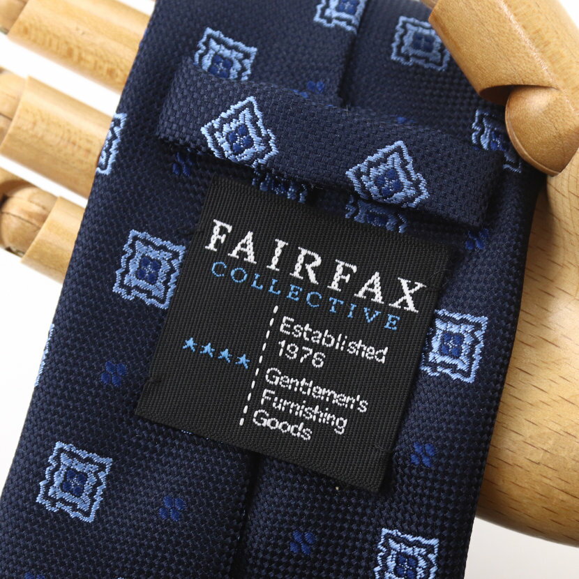 【ブラックフライデー P5倍】 フェアファクス FAIRFAX ネクタイ 小紋柄 ネイビー バスケット織地 シルク100% 日本製 ハンドメイド クリスマス