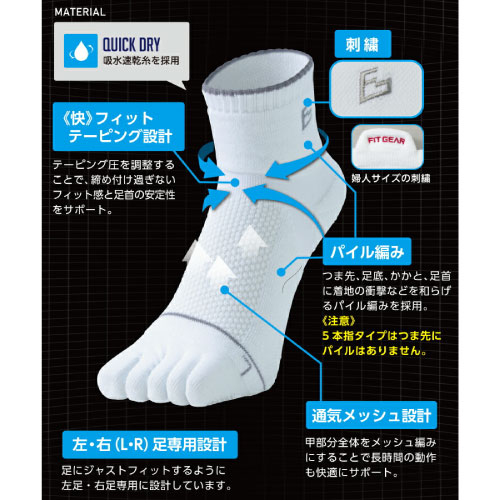 ミカサ FITGEAR快フィット5本指 クルー丈(3380610-WHT)[mikasa MSC メンズソックス]